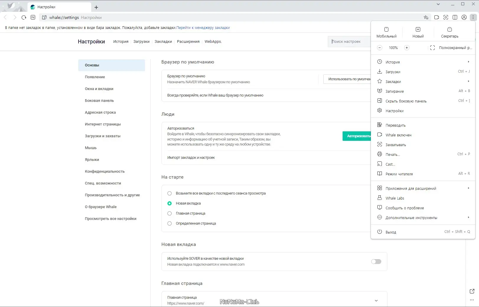 После установки браузер предлагает интуитивно понятный интерфейс, в котором легко разберётся даже новичок. Боковую панель можно настроить под свои нужды, добавляя приложения, такие как календарь, заметки или музыкальные сервисы. Для активации режима мобильного окна достаточно нажать соответствующую иконку в панели инструментов, после чего сайт откроется в формате, адаптированном под смартфон. Режим «Тонкий» сужает браузерные панели, увеличивая полезное пространство экрана, а смена темы позволяет подстроить внешний вид под освещение и личные предпочтения. Все расширения из Chrome WebStore совместимы с Whale, что расширяет его функциональность без ограничений.