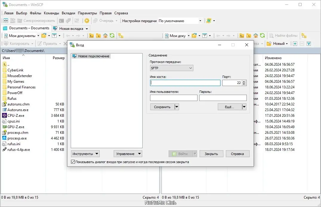 Работа с WinSCP