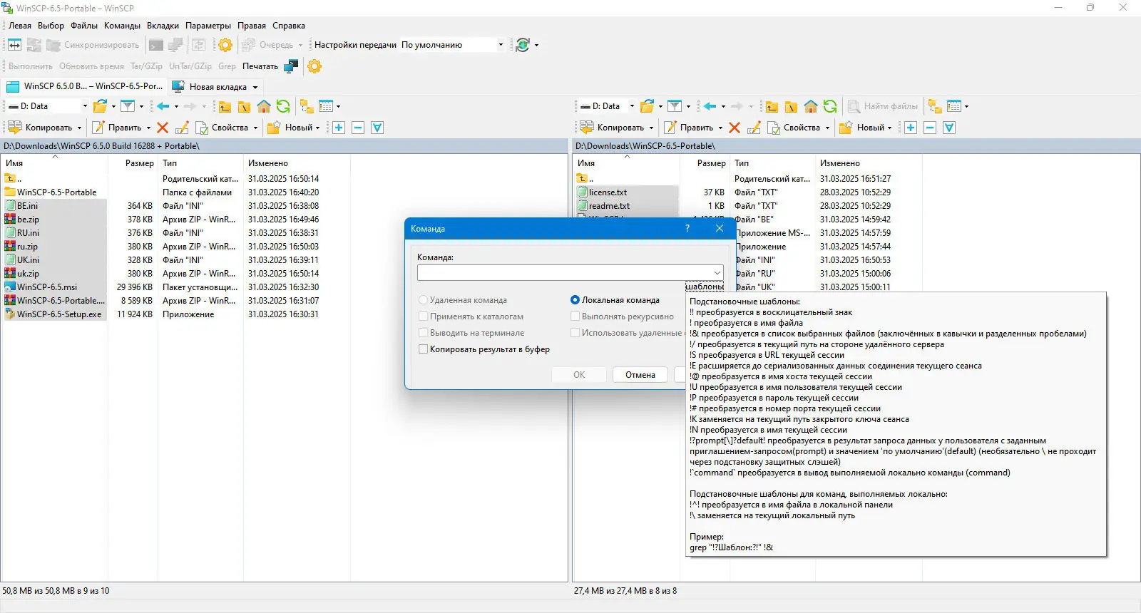 - Поддержка протоколов SFTP и SCP для безопасного копирования файлов