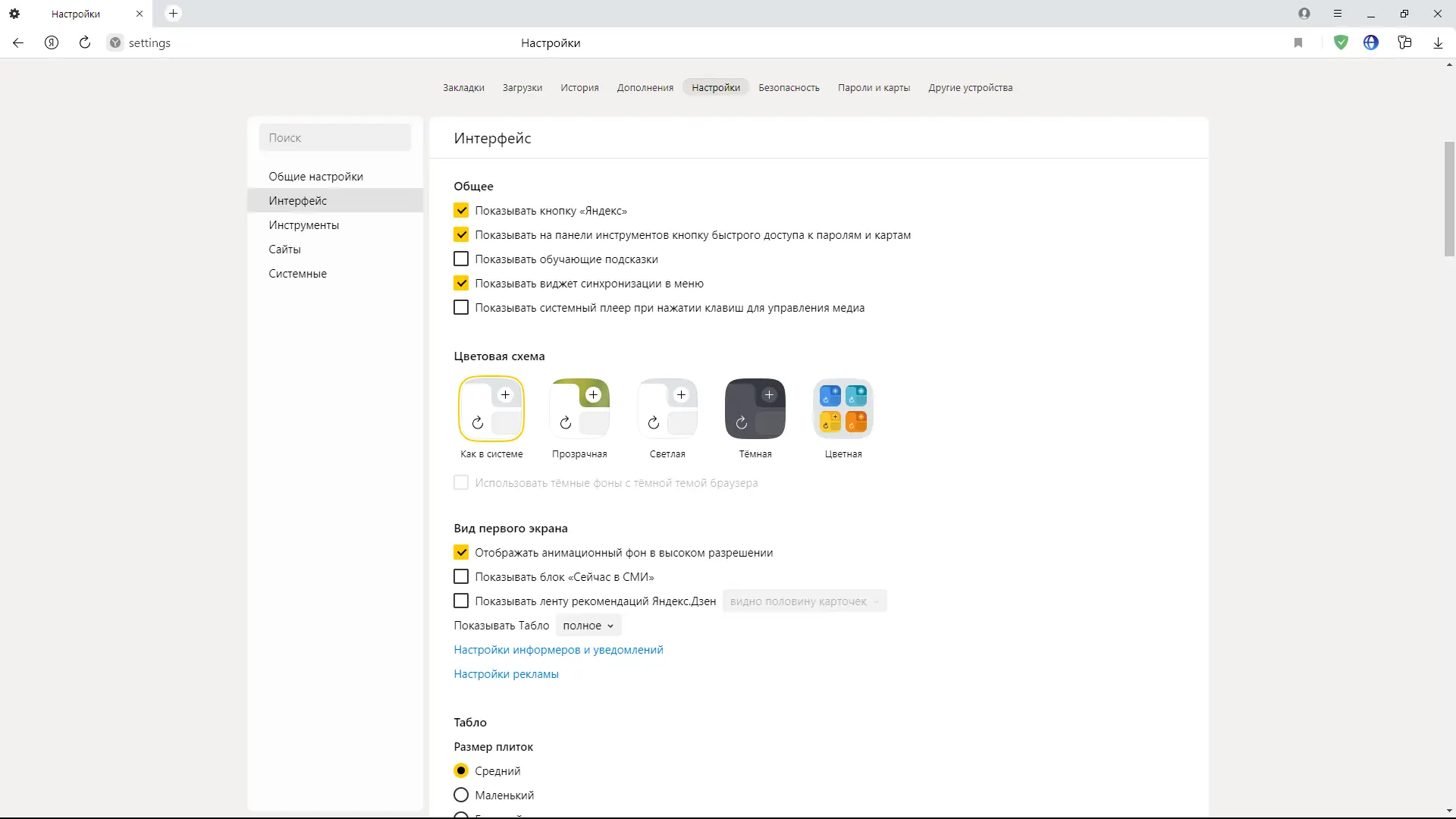 - Возможность настройки внешнего вида новой вкладки под личные предпочтения