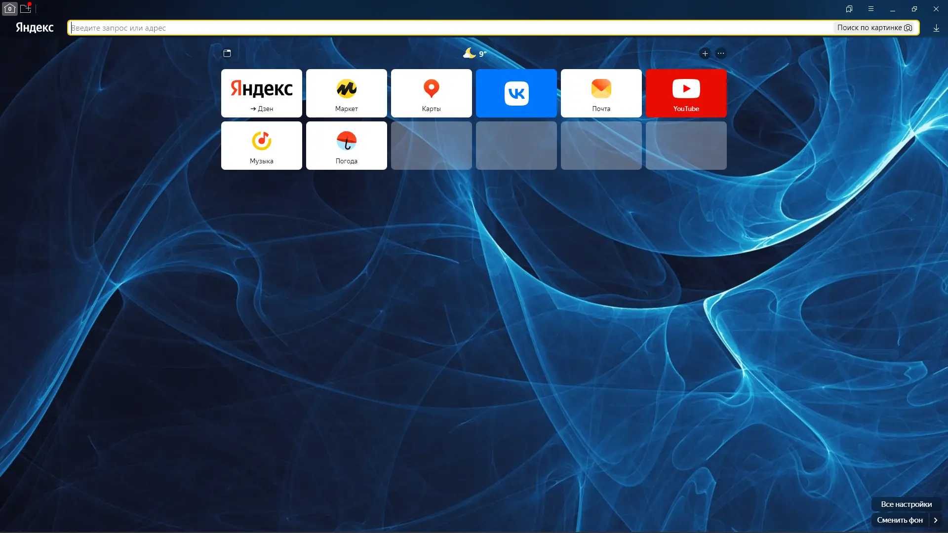 - Включает умную поисковую строку, объединяющую возможности поиска Яндекс и быстрый доступ к часто посещаемым сайтам.