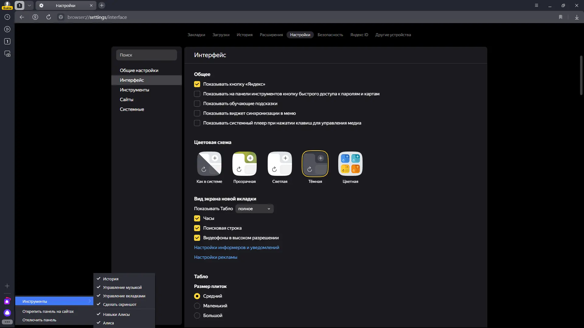 После установить браузер можно сразу начинать работу без сложной настройки. Умная строка в верхней части окна позволяет искать информацию, вводя запросы напрямую, а Табло на новой вкладке показывает часто посещаемые сайты. Для удобства пользователи могут добавлять веб-приложения на боковую панель и открывать их в отдельных окнах, не переключаясь между вкладками. Перевод страниц и видео активируется через контекстное меню или настройки, а для защиты данных используется система Protect, которая проверяет загружаемые файлы и блокирует опасные ресурсы. Экспорт паролей в файл позволяет безопасно переносить учетные данные между устройствами, а блокировка трекеров предотвращает сбор персональной информации.