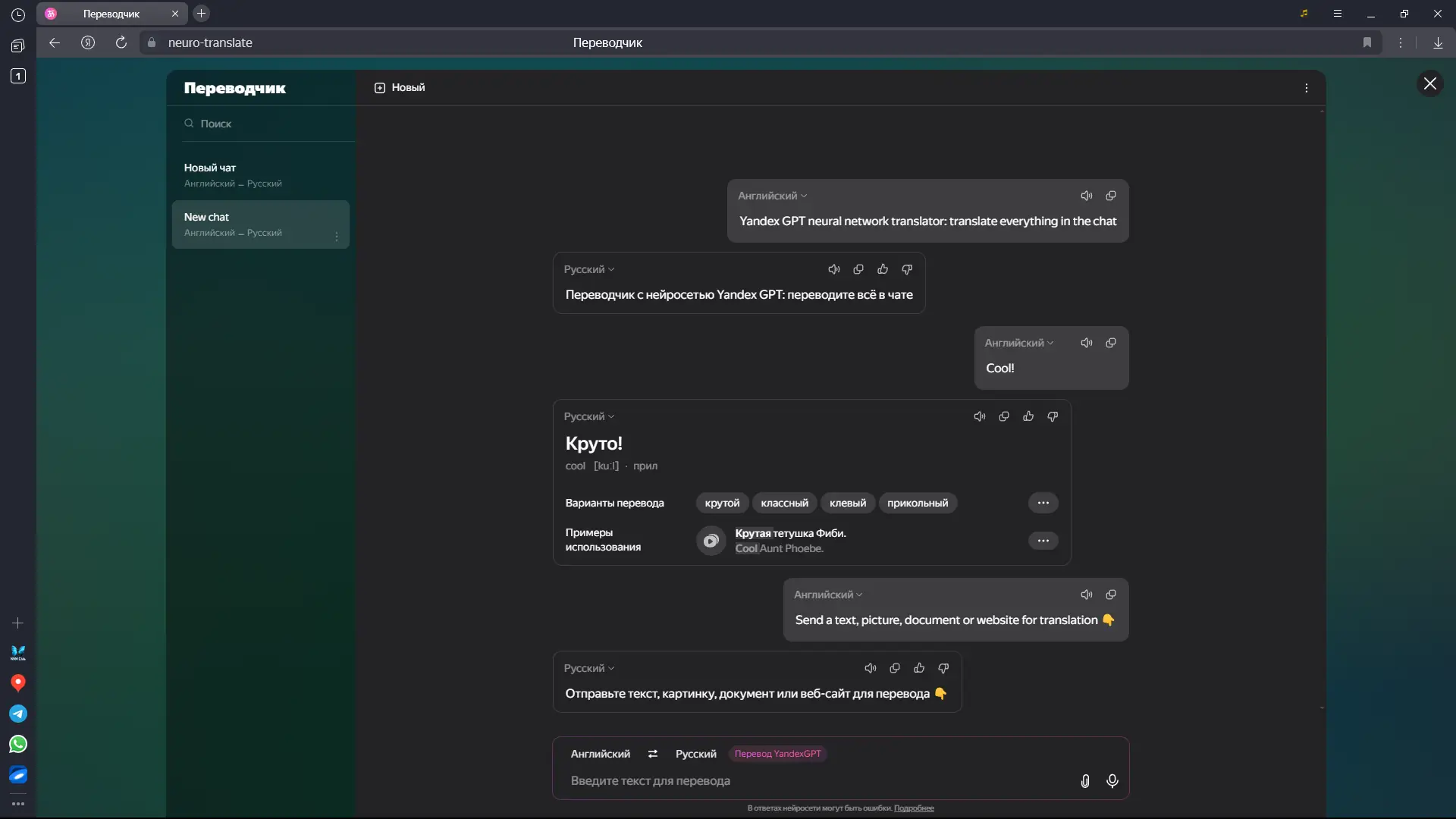 - Удобные инструменты для работы с контентом: перевод картинок, субтитры к видео, нейросетевые функции.