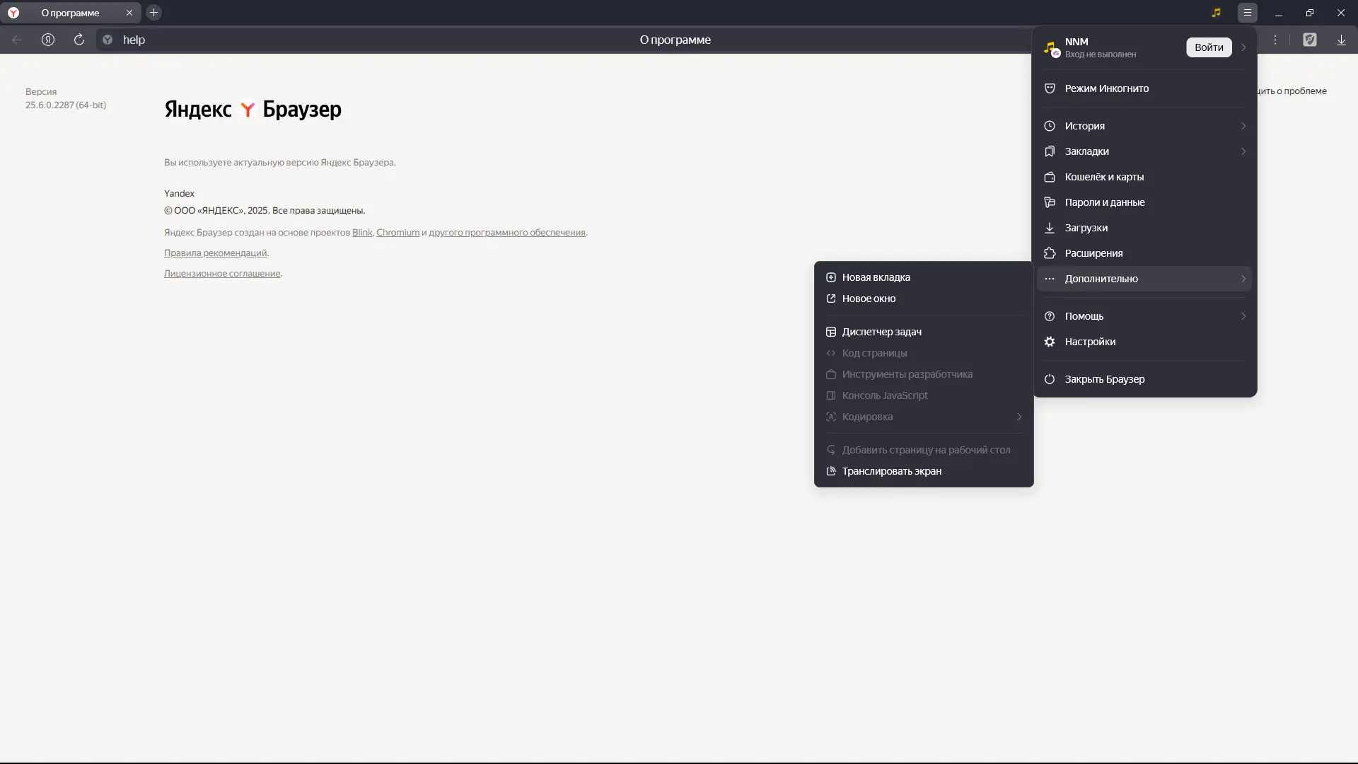 Яндекс Браузер — современный веб-обозреватель на базе Chromium, разработанный компанией Яндекс. Он сочетает в себе высокую скорость, безопасность и удобные функции, такие как умная строка поиска, встроенный переводчик, защита от вредоносных сайтов и поддержка нейросетевых технологий. Программа обеспечивает комфортный доступ к интернету даже при слабом соединении и подходит как для новичков, так и для опытных пользователей.