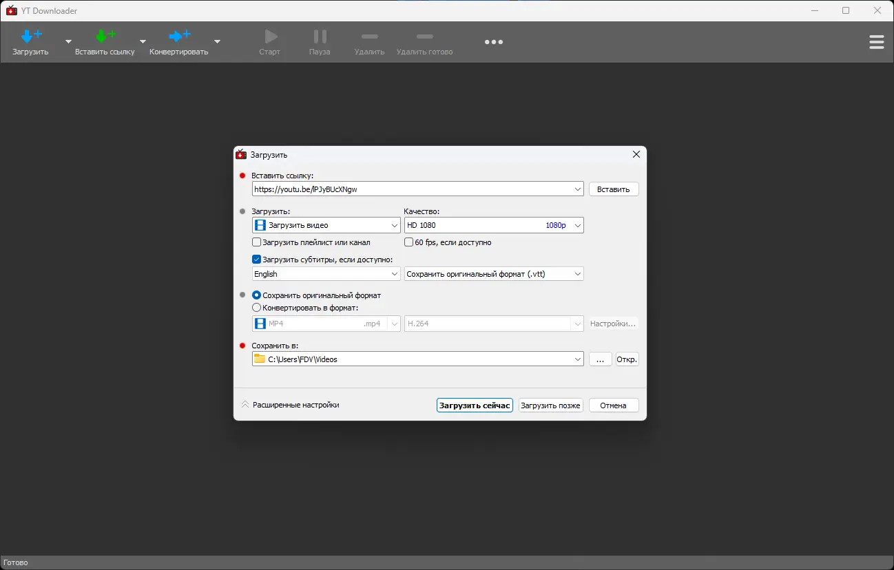 - Наличие встроенного проигрывателя и конвертера, включая преобразование в mp4 и другие популярные форматы.
