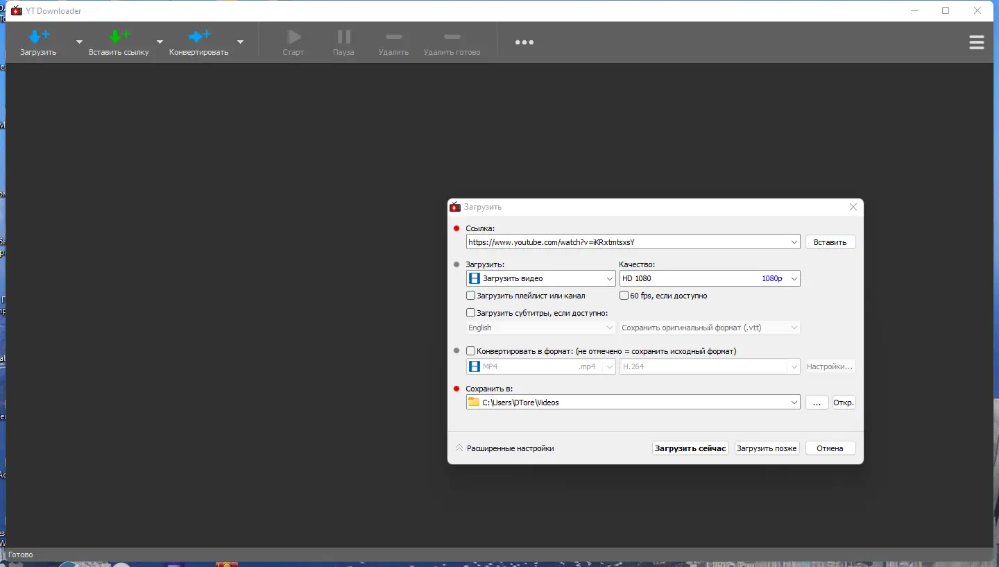 - Возможность извлекать аудиодорожку из видео и сохранять её в mp3, что удобно для прослушивания музыки без видео.