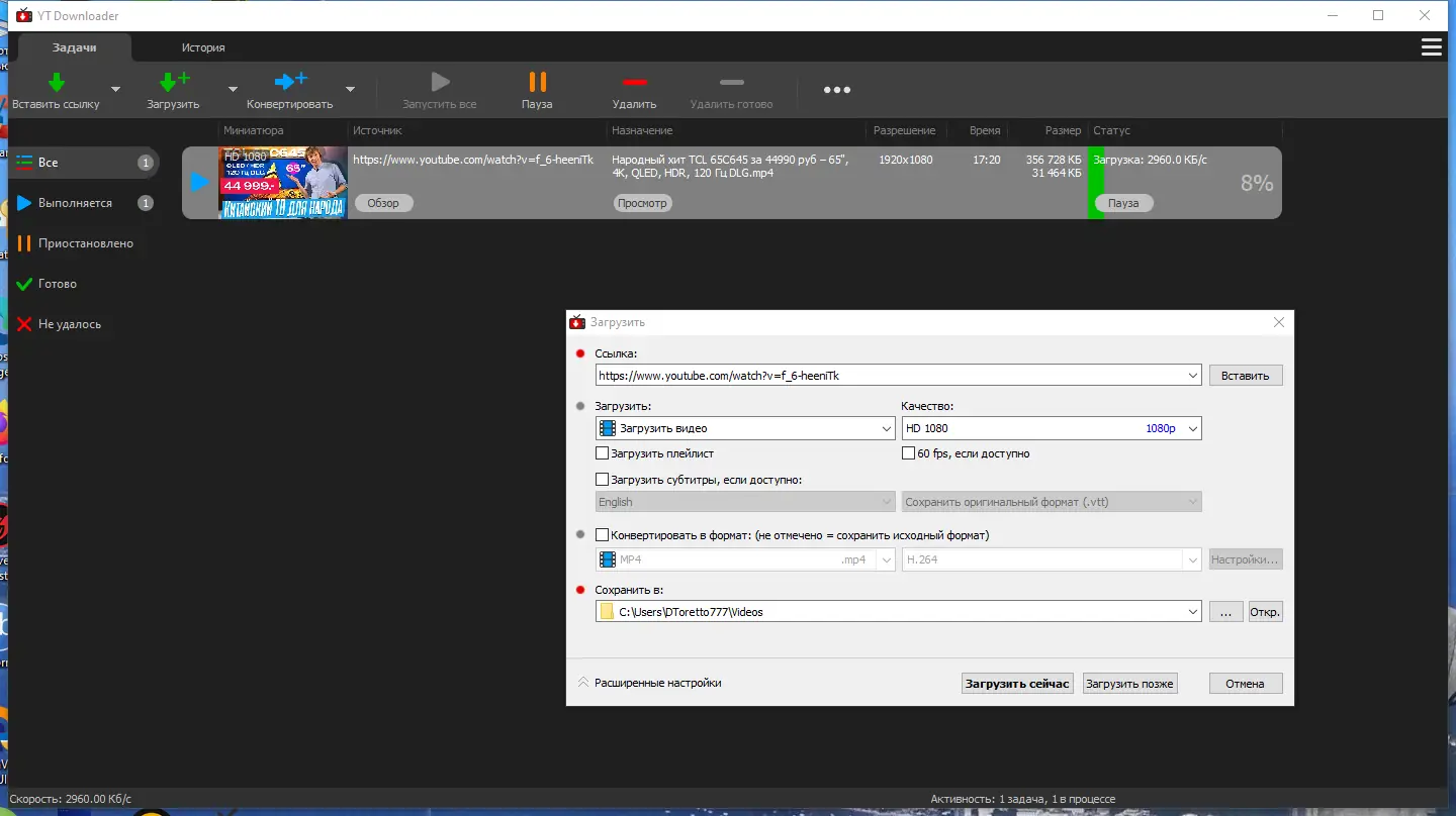Программа сочетает в себе функции скачивания, конвертации и воспроизведения, что делает её универсальным решением для работы с онлайн-видео.