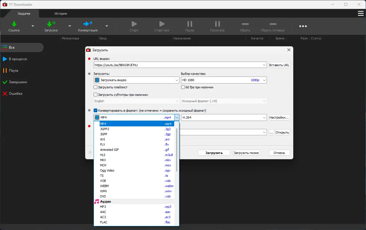 Использование приложения не требует специальных навыков. Достаточно скопировать ссылку на видео из браузера и вставить её в основное окно программы. Также поддерживается функция drag-and-drop — можно просто перетащить URL прямо в интерфейс. После этого выбирается желаемое качество и формат, после чего начинается процесс загрузки. При необходимости загрузку можно приостановить или возобновить позже. Для конвертации локальных файлов используется встроенный конвертер с предустановленными профилями под разные устройства.