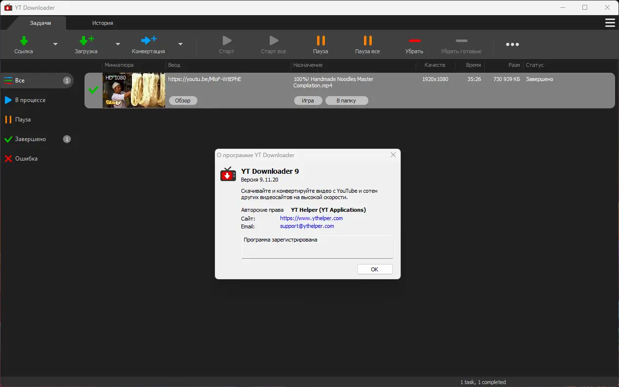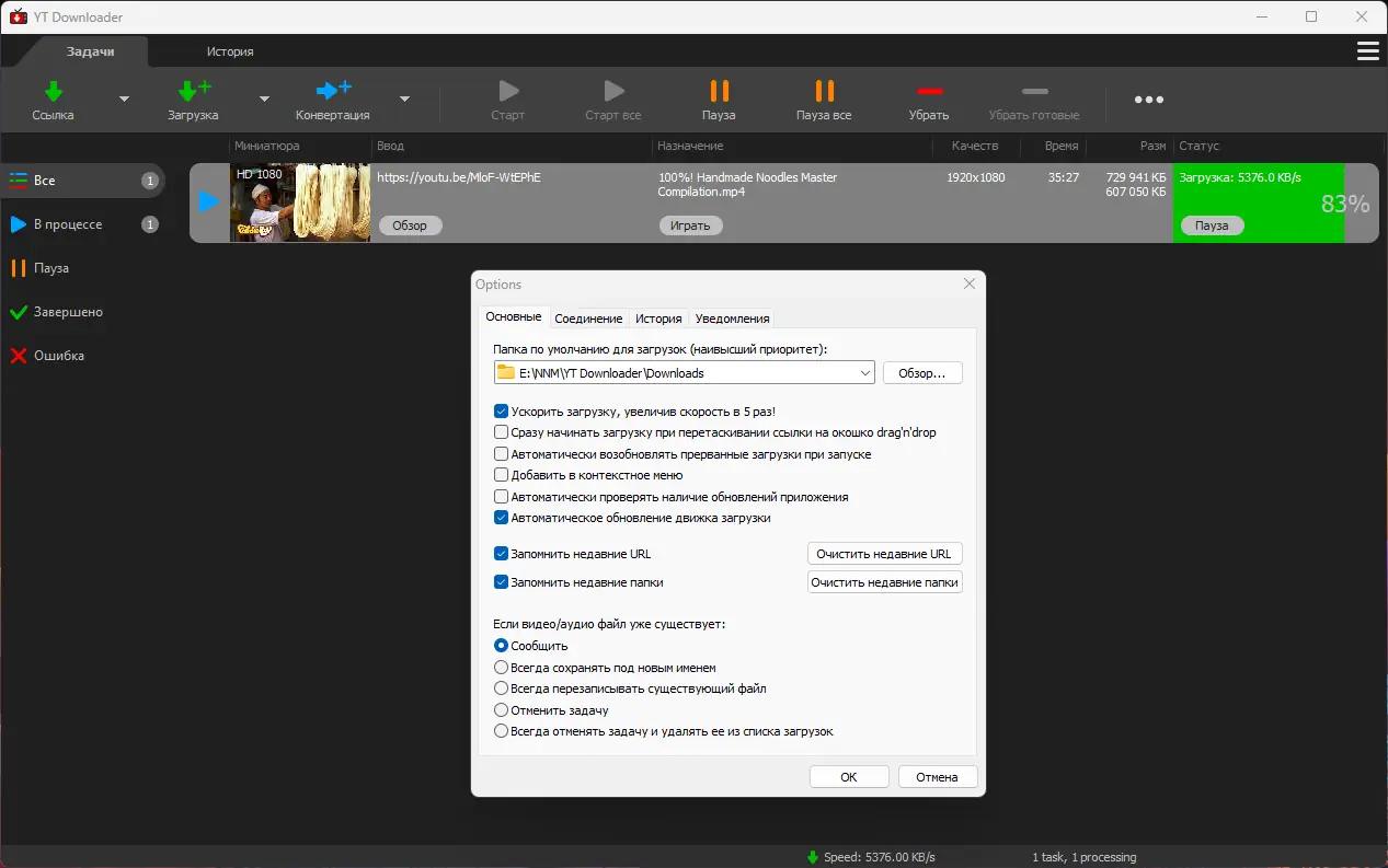 Использование приложения не вызывает затруднений даже у новичков. Достаточно скопировать ссылку на видео из браузера и вставить её в основное окно программы, либо перетащить URL напрямую. После этого откроется список доступных форматов и разрешений, из которого можно выбрать подходящий. Для прослушивания музыки доступна опция извлечения аудио в mp3, что позволяет быстро получить трек без сохранения полного видео. Программа также поддерживает фоновую загрузку, приостановку и возобновление процесса, а встроенная функция предварительного просмотра даёт возможность проверить контент ещё до завершения скачивания. После завершения, файлы можно конвертировать в нужный формат или сразу воспроизвести через встроенный медиаплеер.