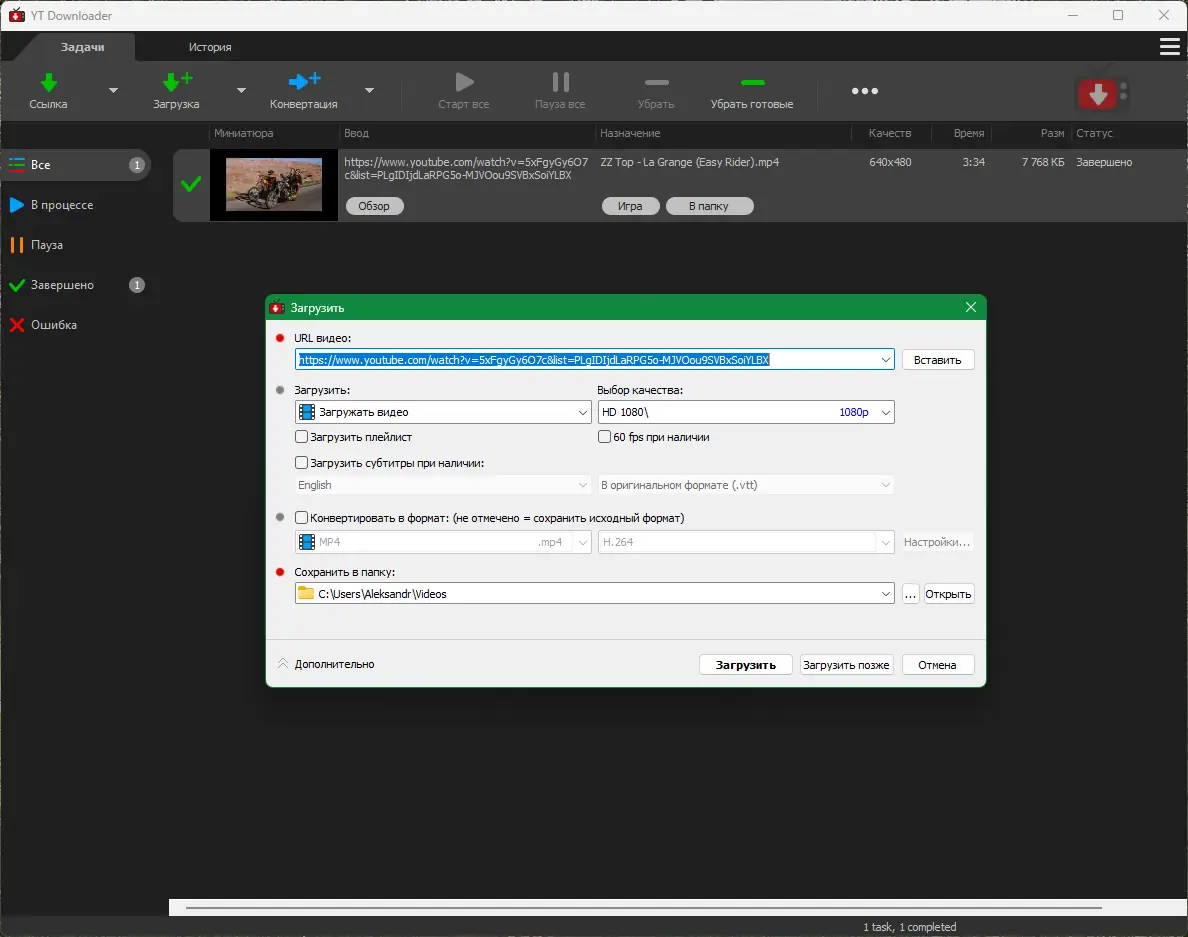 Работа с YT Downloader