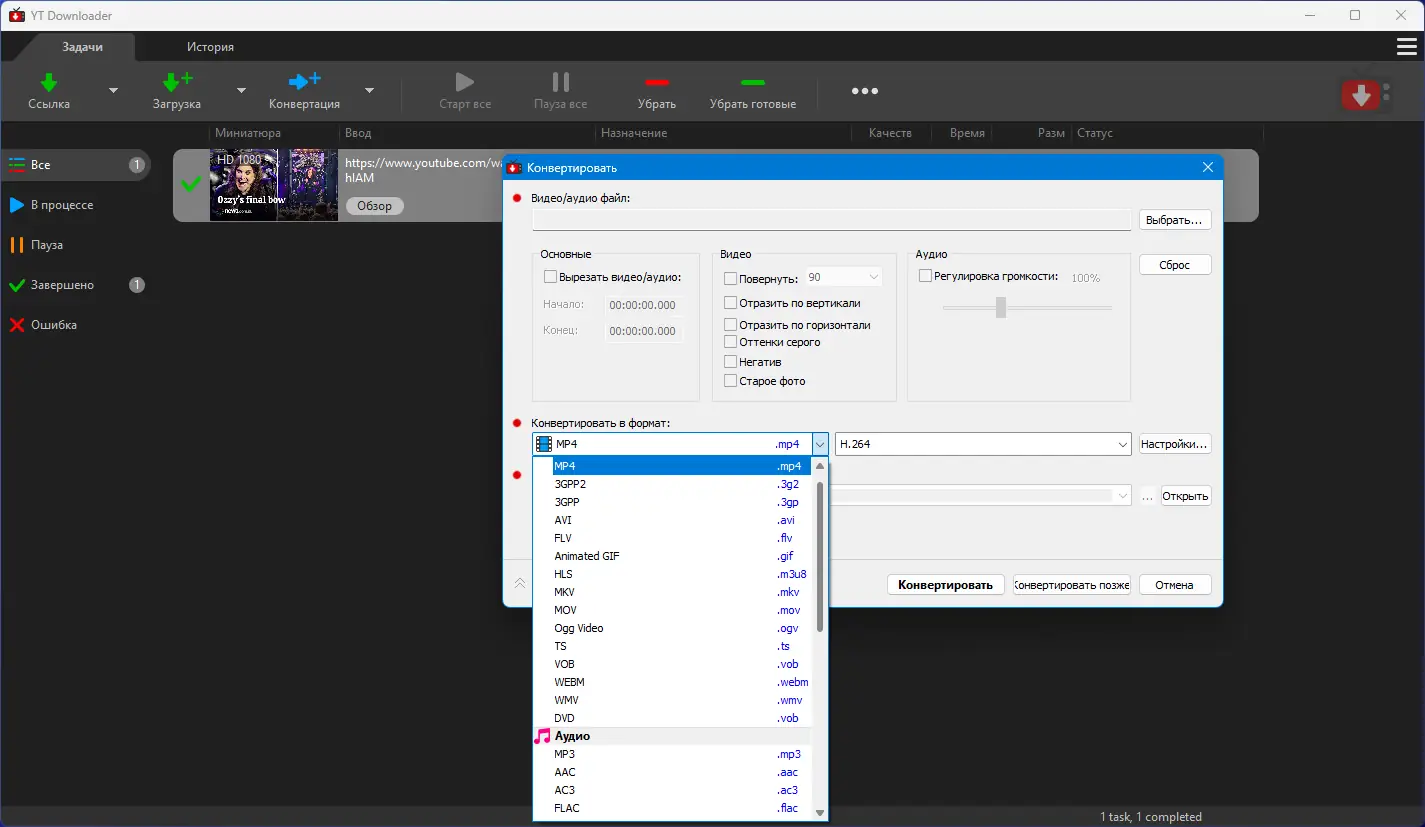 - Поддержка высоких разрешений, включая 4K, и возможность конвертации в mp4 и другие популярные форматы