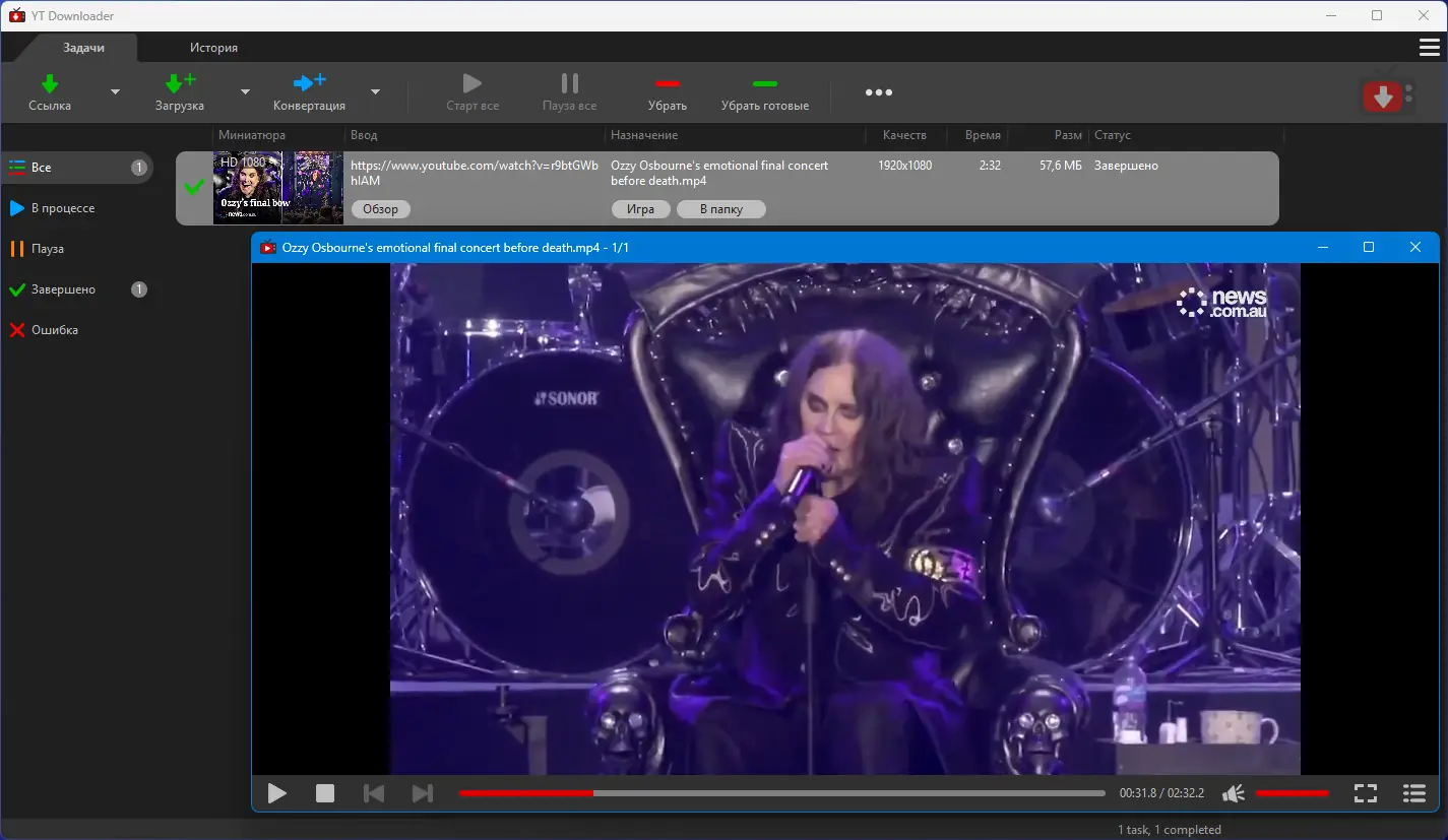 Работа с YT Downloader