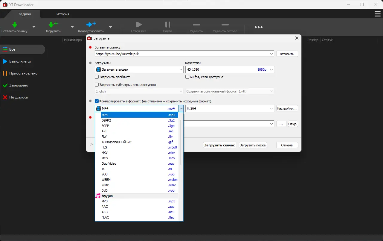 - Наличие встроенного конвертера для преобразования видео в нужный формат, включая mp4 и аудио