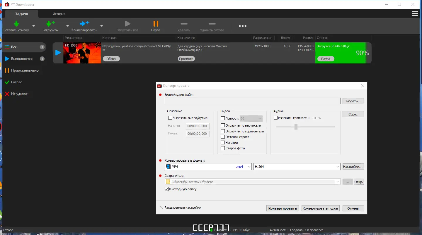 - Возможность извлекать аудио из видео и сохранять в mp3