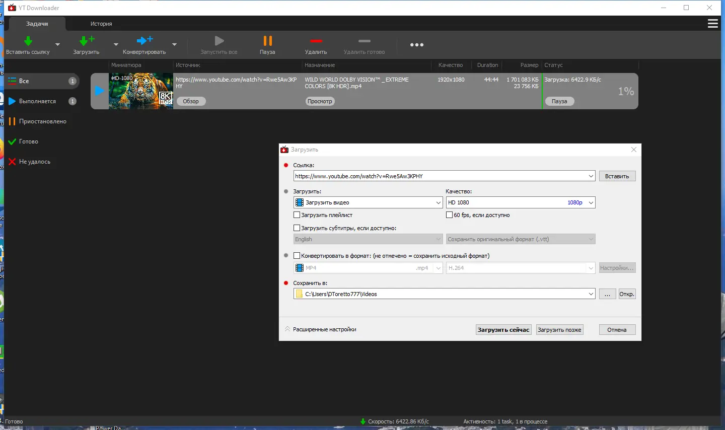 - Возможность скачивать видео в разрешениях до 4k, включая HD 1080p и 720p.