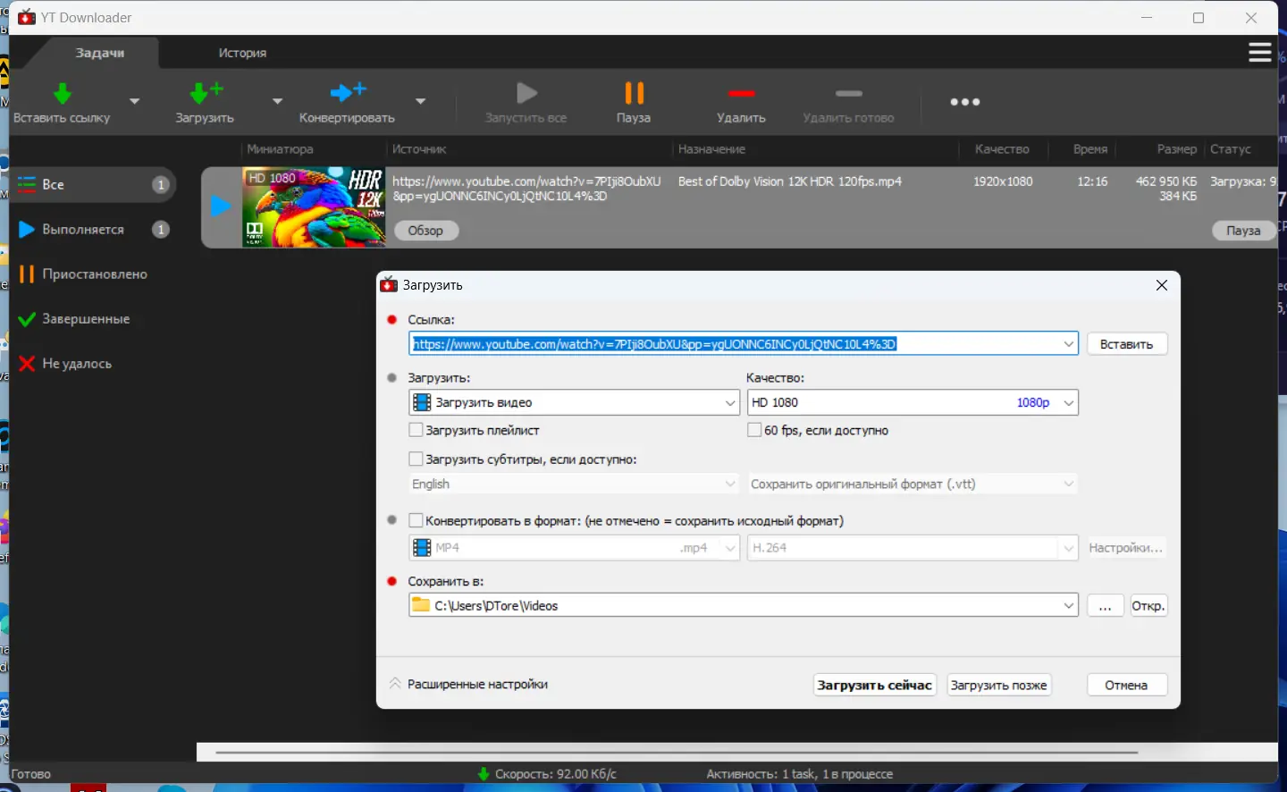Работа с YT Downloader
