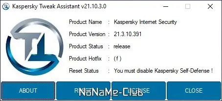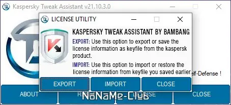 Kaspersky Tweak Assistant — это компактная служебная утилита, предназначенная для управления лицензионным состоянием продуктов лаборатории Касперского, включая KAV, KIS, KTS и KES. Программа позволяет сбросить пробный период, активировать продукт с помощью лицензионного файла или сохранить текущую лицензию для последующего использования. Поддерживает версии 2019, 2020 и 2021 годов, включая обновления до v21.3.10.391. Работает только при отключённой защите Касперского и требует запуска от имени администратора.