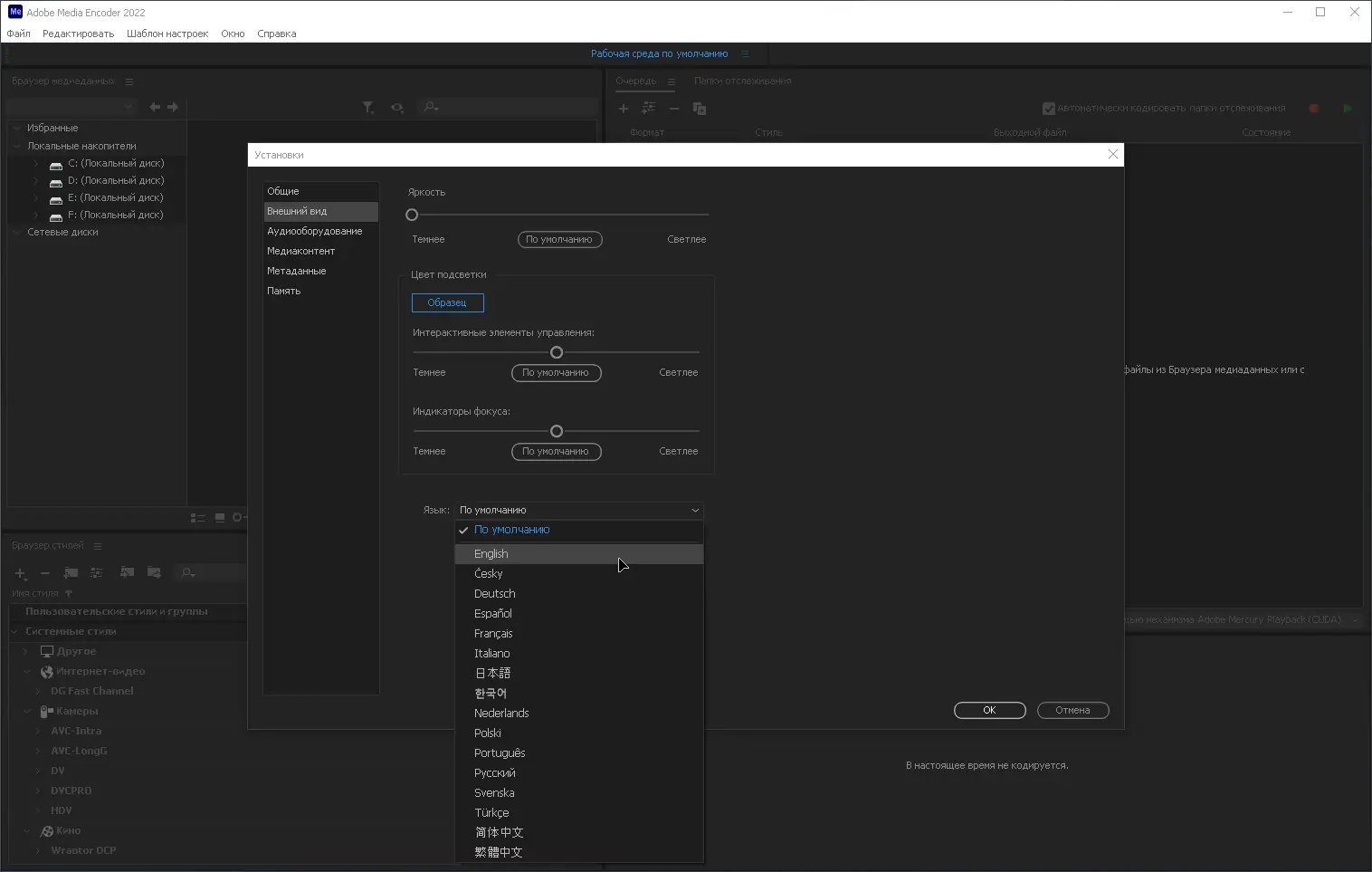 Работа с Adobe Media Encoder