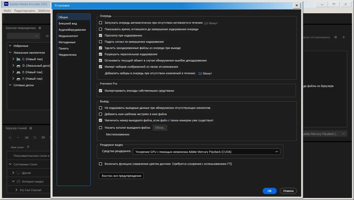 Работа с Adobe Media Encoder