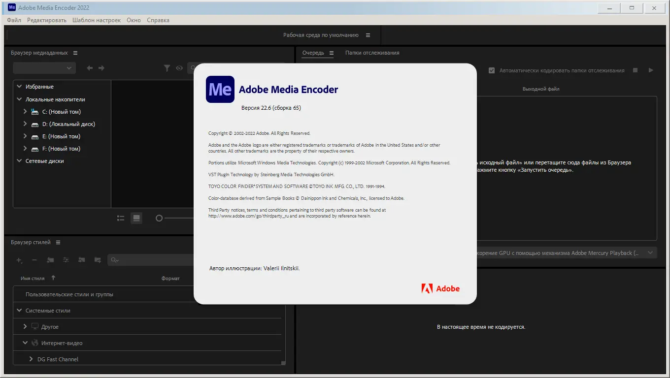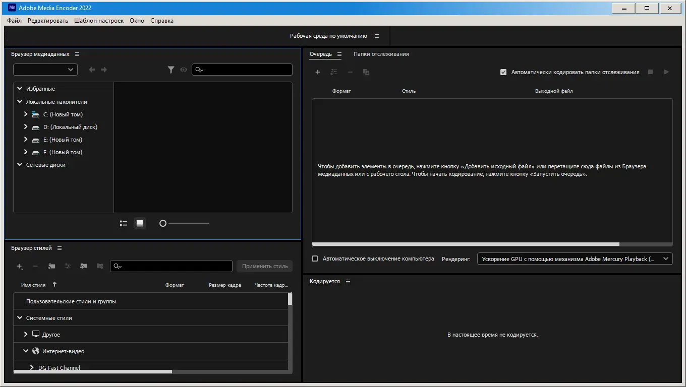 Adobe Media Encoder 2022 — это профессиональное программное обеспечение для кодирования видео и аудио, предназначенное для конвертации медиафайлов в широкий спектр форматов. Инструмент интегрируется с другими приложениями Adobe Creative Cloud и обеспечивает высокую производительность при обработке контента для разных платформ и устройств. Программа поддерживает современные стандарты сжатия, цветокоррекцию и работу с материалами высокого разрешения, включая 4K и VR. Она подходит как для индивидуальных пользователей, так и для студий, которым важна точность и скорость экспорта.