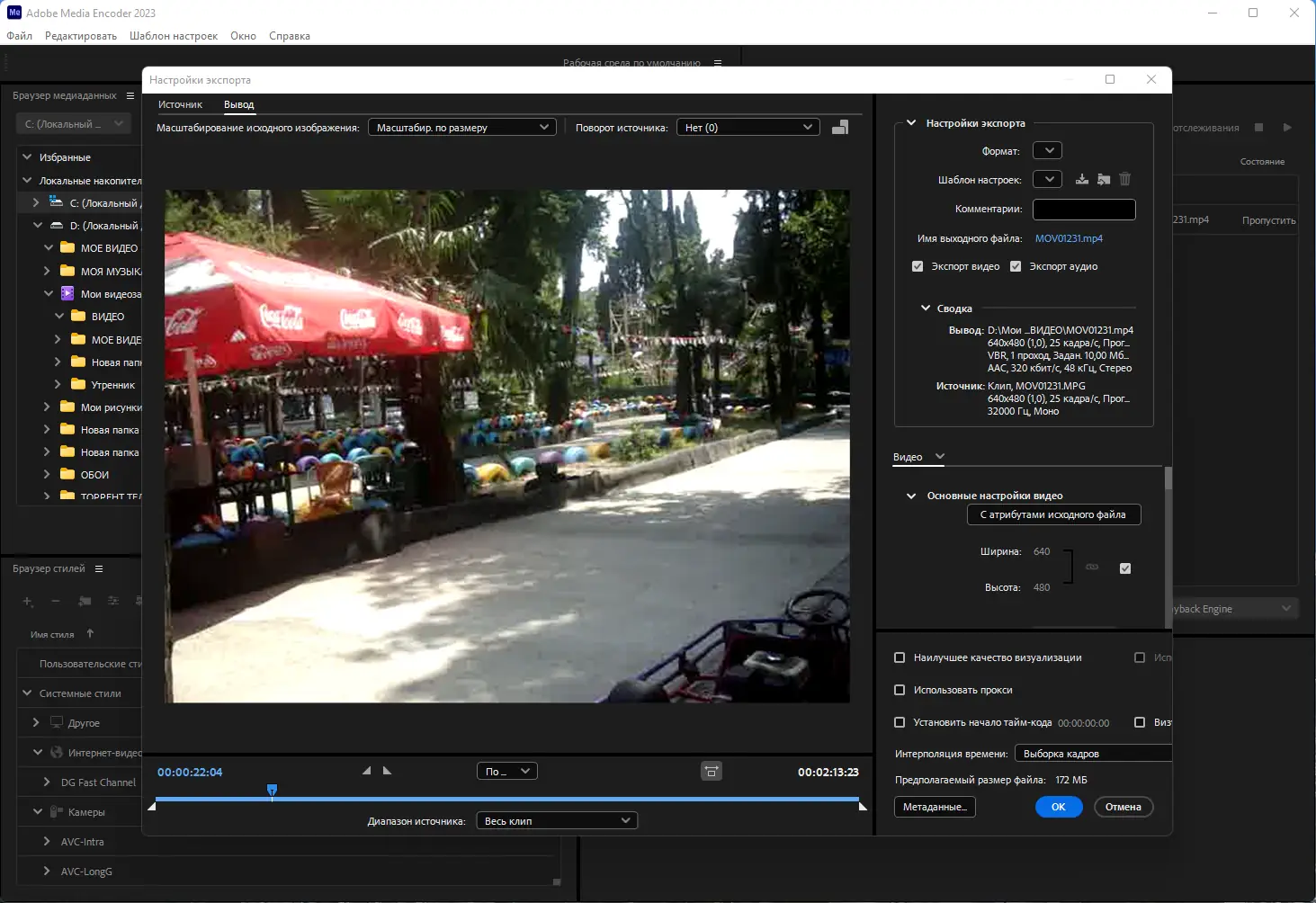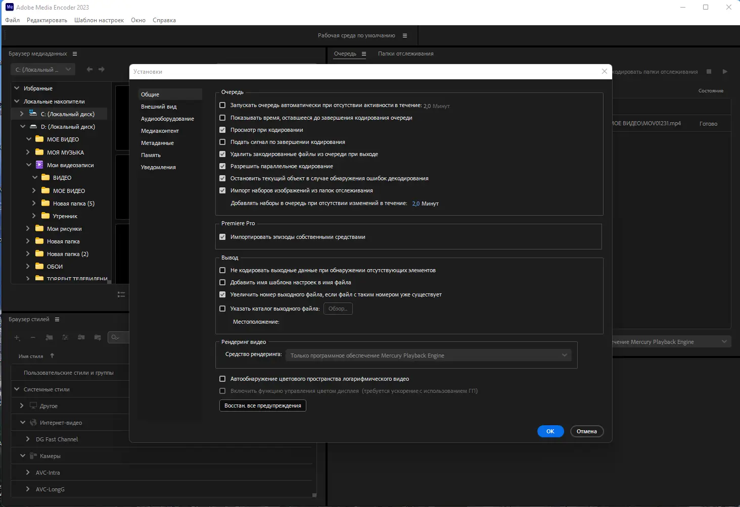 Работа с Adobe Media Encoder