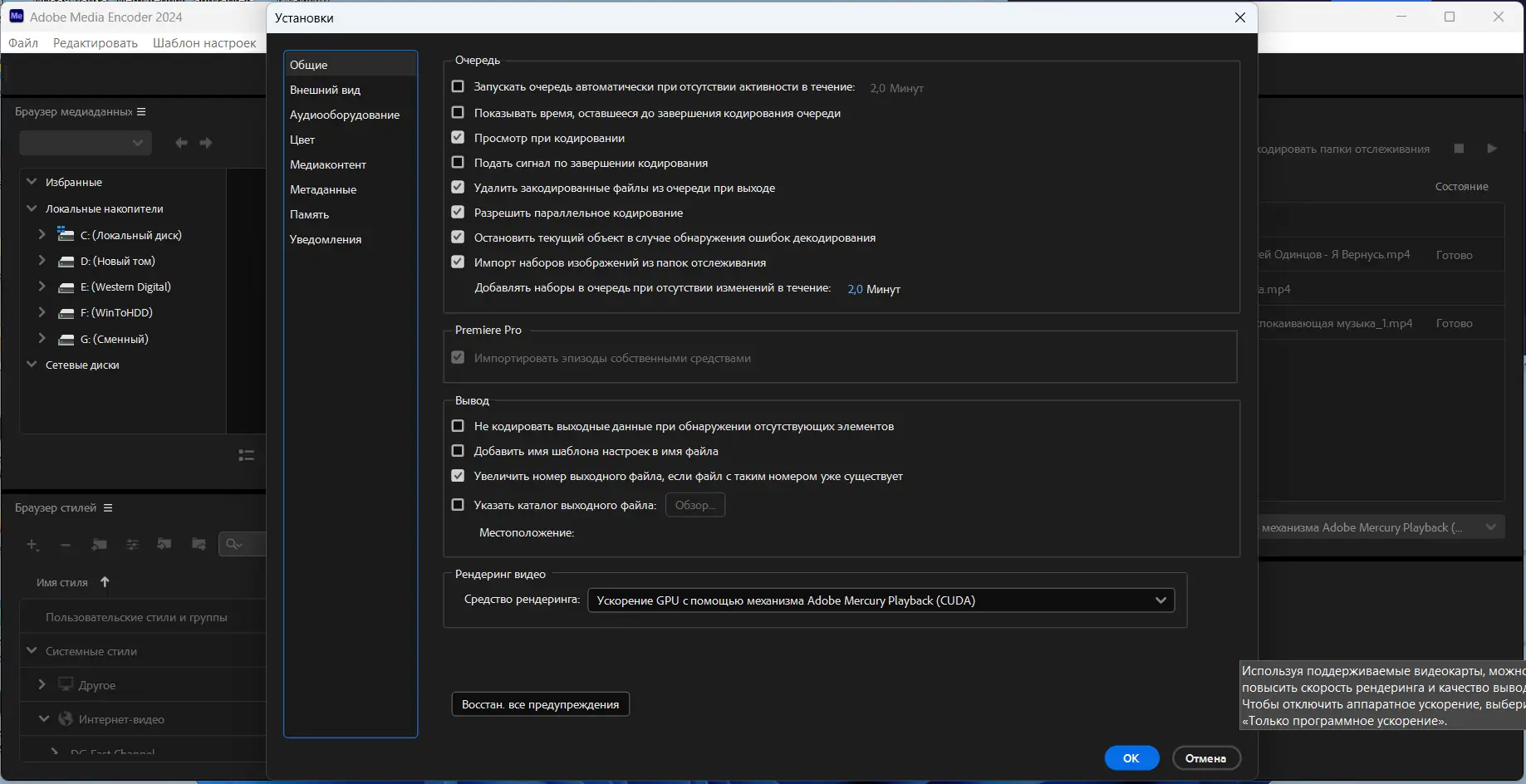Работа с Adobe Media Encoder