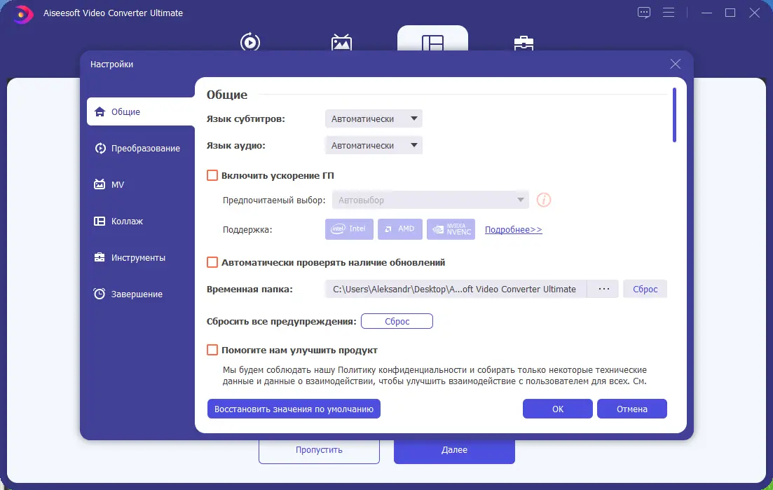 Работа с Aiseesoft Video Converter Ultimate
