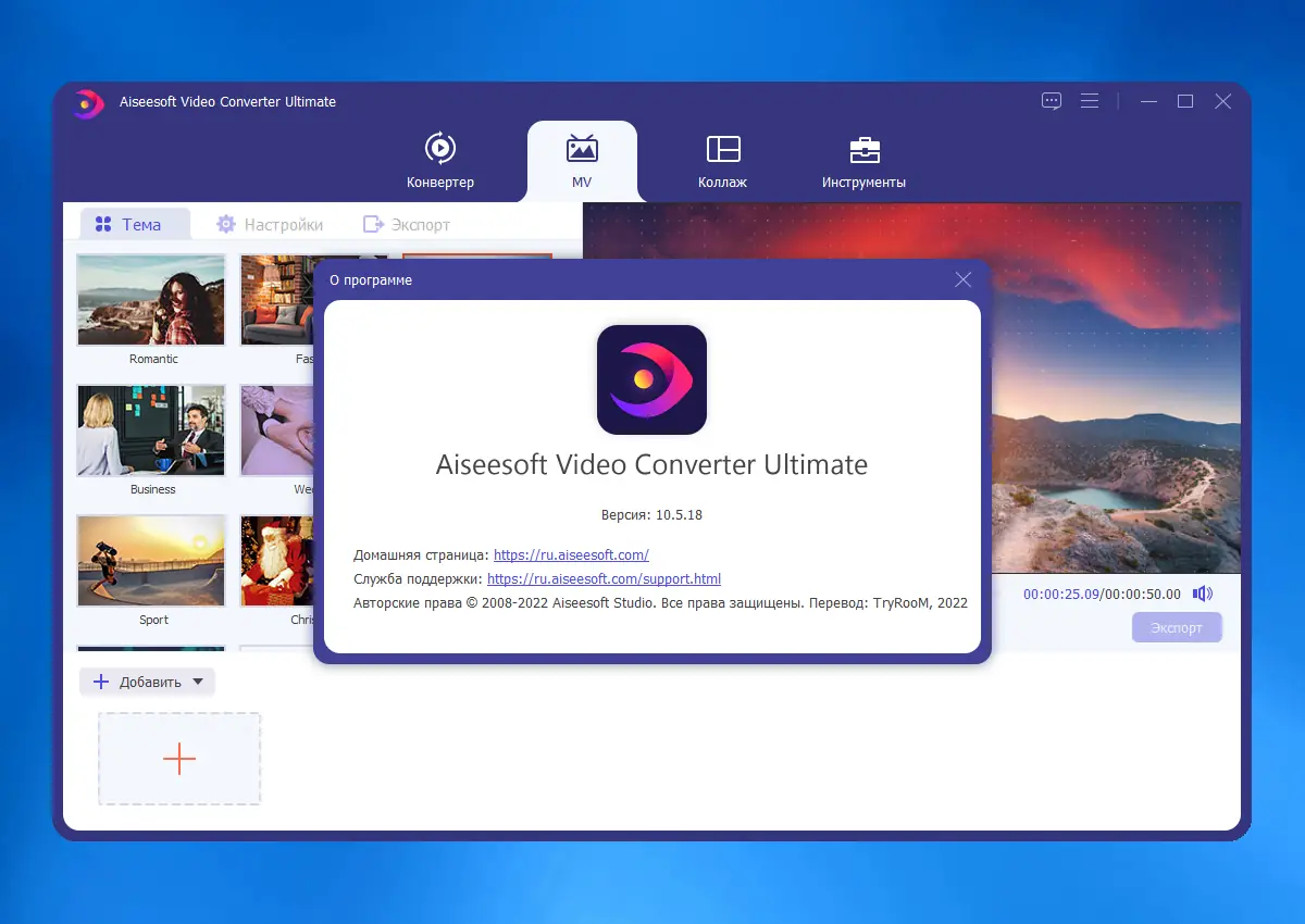 Aiseesoft Video Converter Ultimate — универсальное программное обеспечение для конвертации, редактирования и улучшения видео и аудиофайлов. Поддерживает широкий спектр форматов, включая HD и 4K, а также позволяет извлекать звук, редактировать контент и оптимизировать качество изображения. Инструмент подходит как для домашнего использования, так и для профессиональной обработки медиаданных.