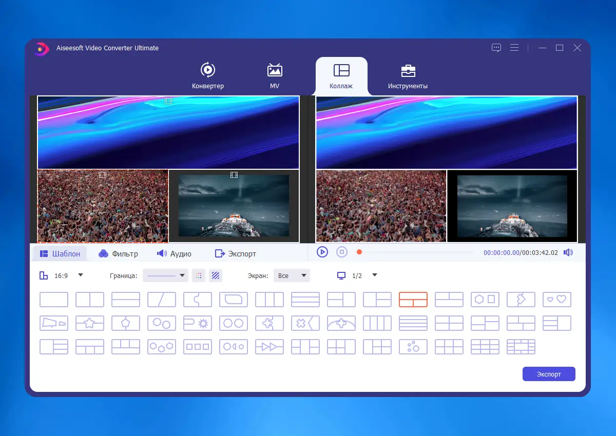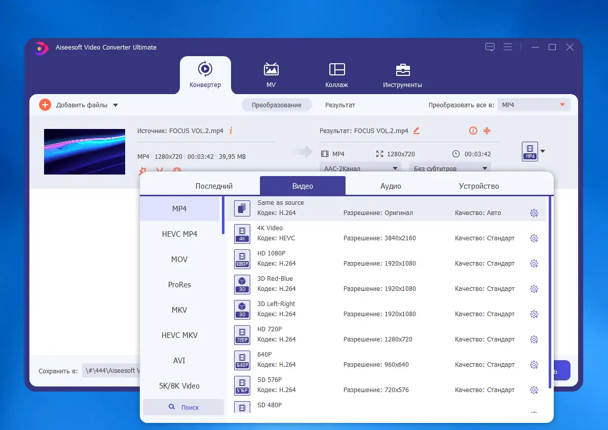 - Поддержка конвертации в популярные видеоформаты, включая 4K и HD