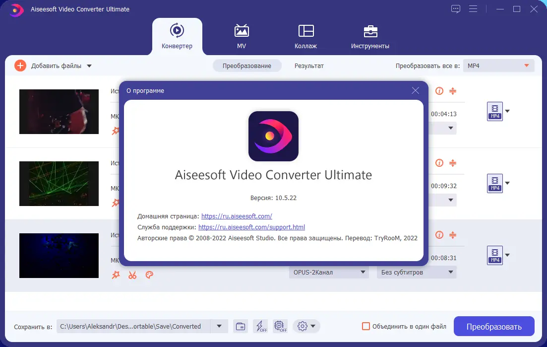 Работа с Aiseesoft Video Converter Ultimate