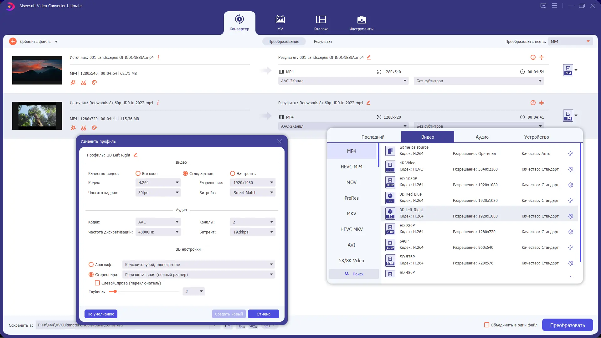 - Поддерживается преобразование контента в 3D-видео для совместимых устройств и проигрывателей.