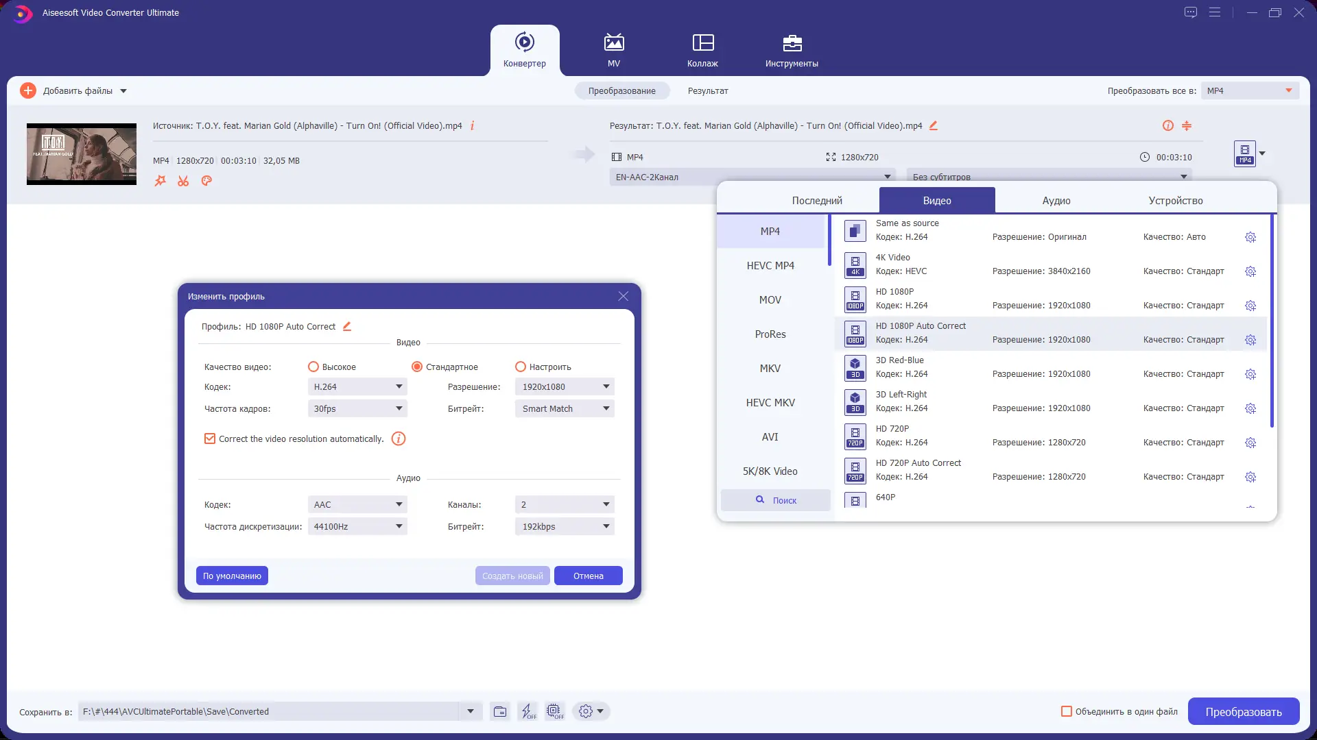 - Поддержка конвертации в 4K и 3D, включая HD-форматы и мобильные профили.