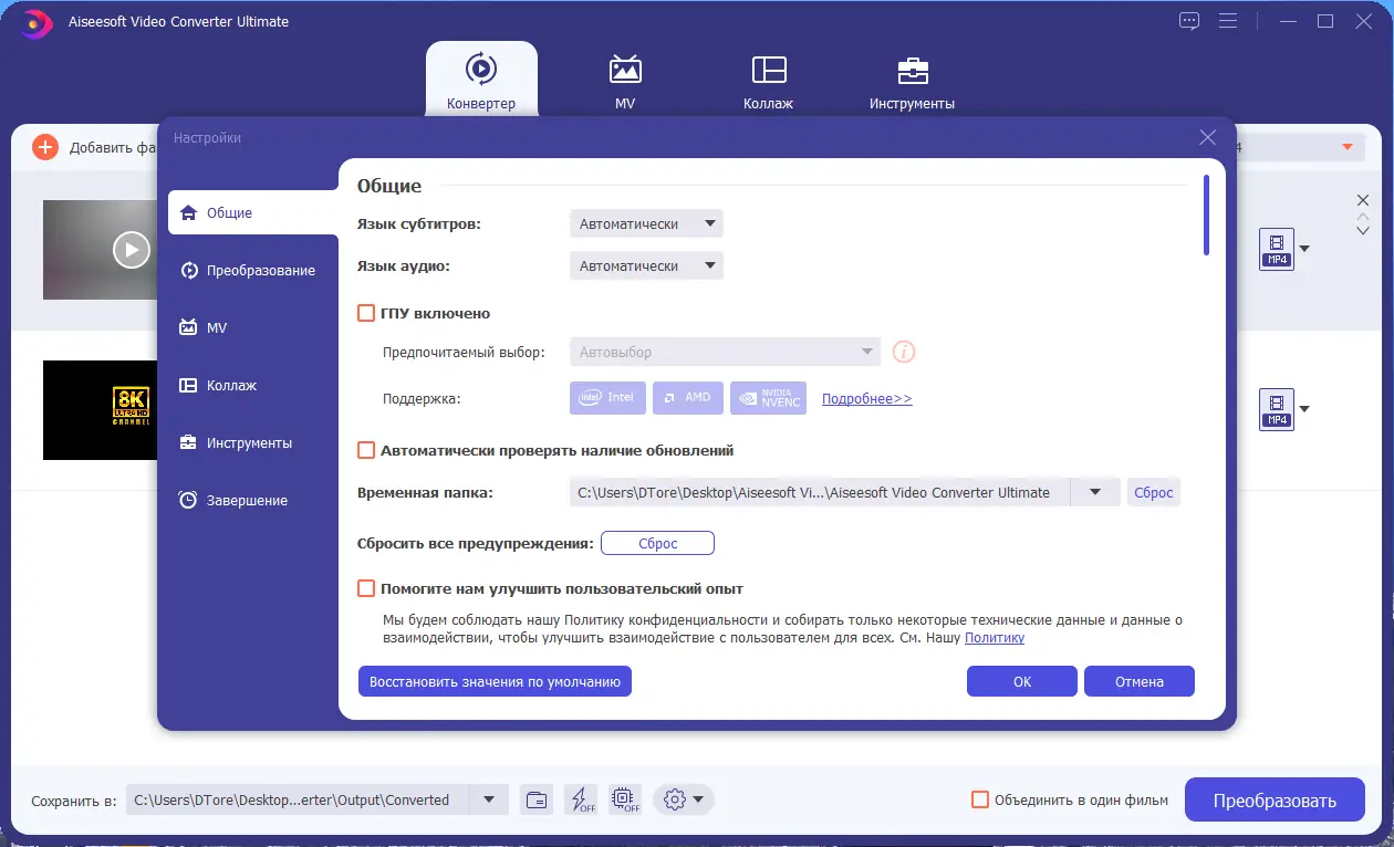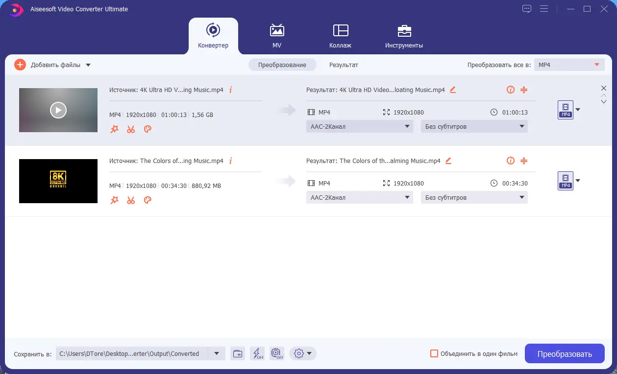 Работа с Aiseesoft Video Converter Ultimate