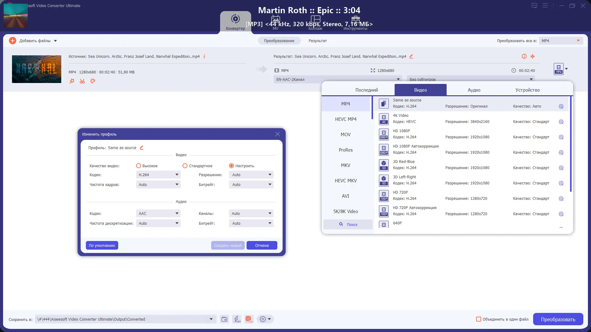 Aiseesoft Video Converter Ultimate — многофункциональный инструмент для конвертации, редактирования и обработки видеофайлов, DVD и Blu-Ray дисков. Программа поддерживает широкий спектр форматов, включая 4K UltraHD и 3D-видео, а также позволяет извлекать аудиодорожки и оптимизировать контент под мобильные устройства. Удобный интерфейс и встроенные функции улучшения качества делают её универсальным решением для работы с мультимедиа.