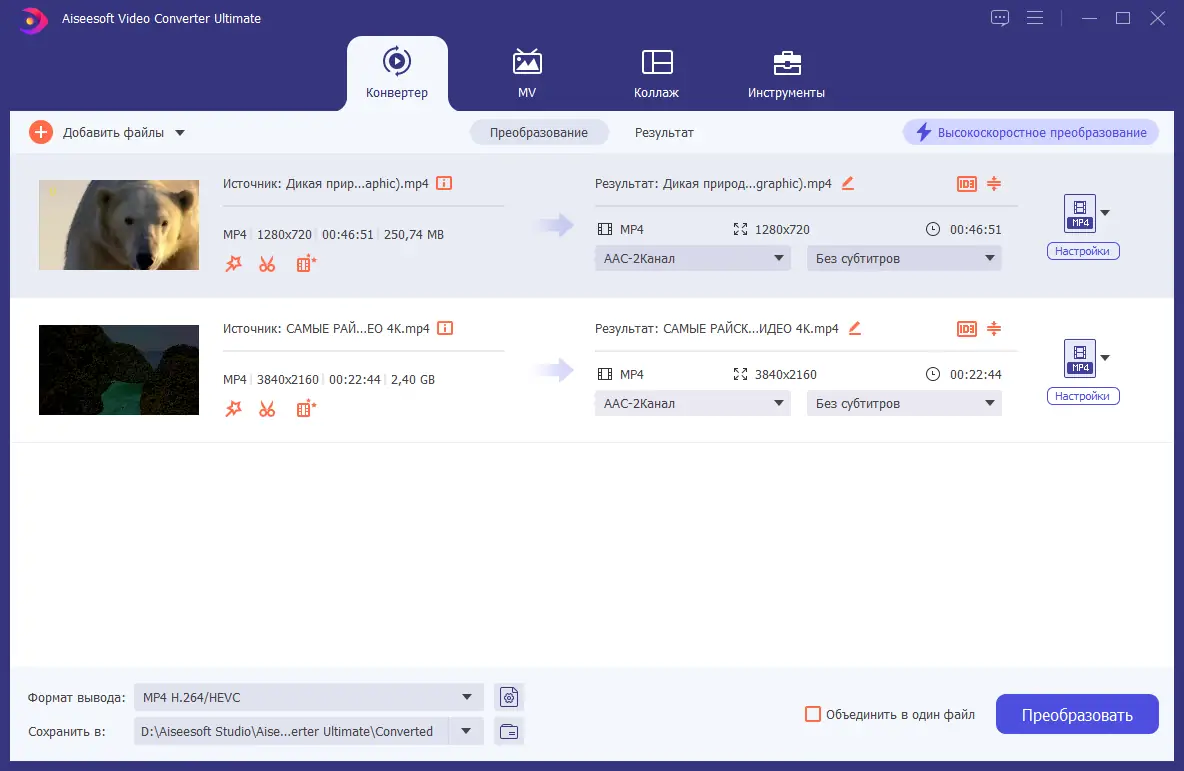 - Высокая скорость конвертации с поддержкой 4K и 3D