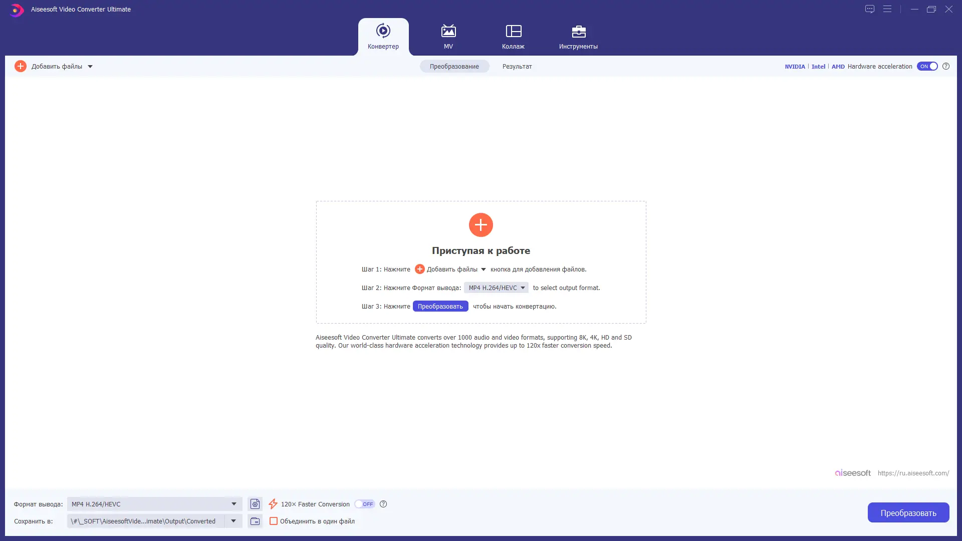 Aiseesoft Video Converter Ultimate — универсальный инструмент для конвертации, редактирования и загрузки видео. Программа поддерживает широкий спектр форматов, включая 4K и 3D, а также предлагает встроенные функции улучшения качества и настройки изображения. Она подходит как для домашнего использования, так и для профессиональной обработки видеоматериалов.