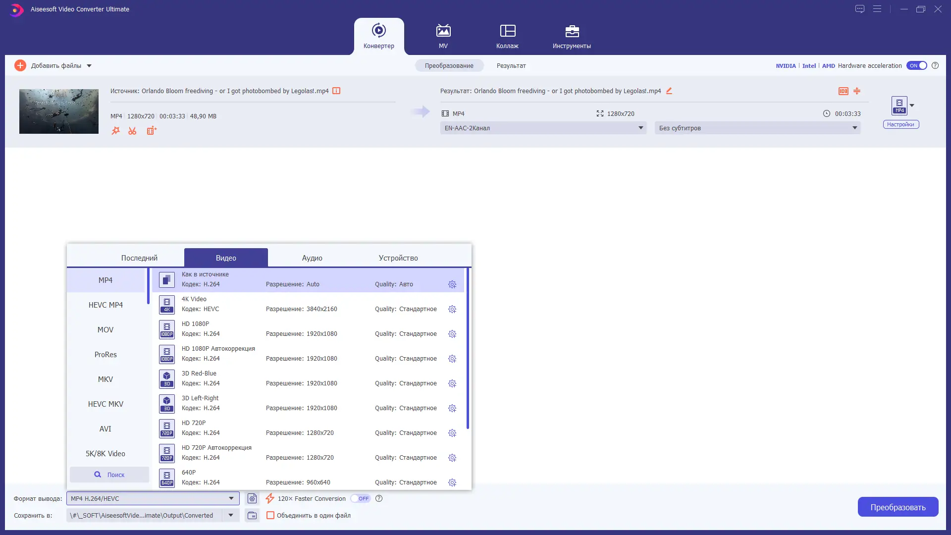 - Поддержка HD и 4K UltraHD при конвертации видео и DVD