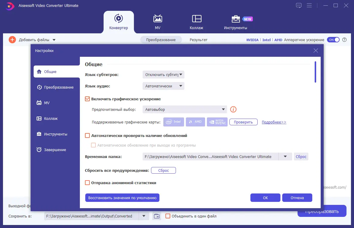 Работа с Aiseesoft Video Converter Ultimate