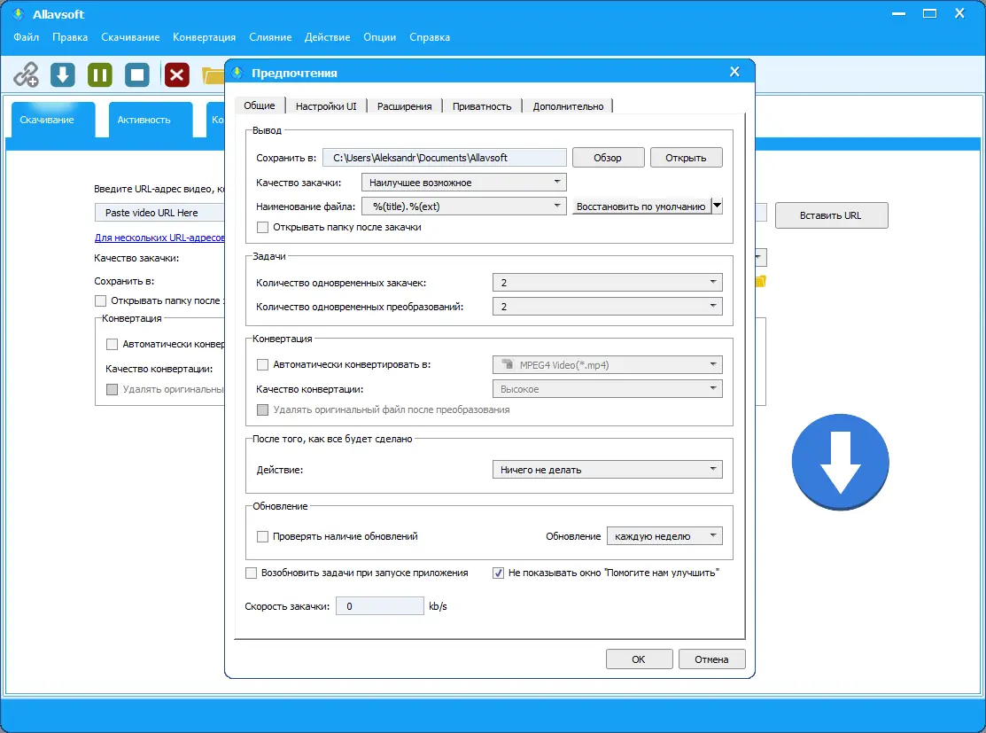 Работа с Allavsoft