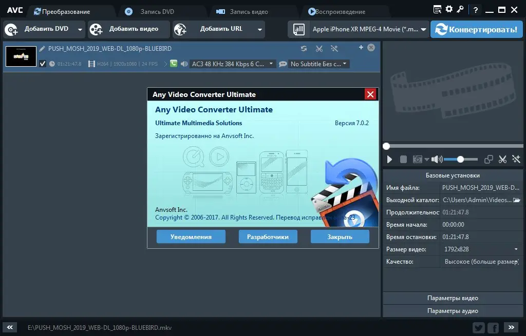Any Video Converter Ultimate — это мощное приложение для конвертации видео в широкий спектр форматов с высокой скоростью и отличным качеством. Поддержка более 200 форматов, включая 4K и H.265, позволяет эффективно обрабатывать контент для любых устройств и платформ, от мобильных телефонов до Blu-ray дисков.