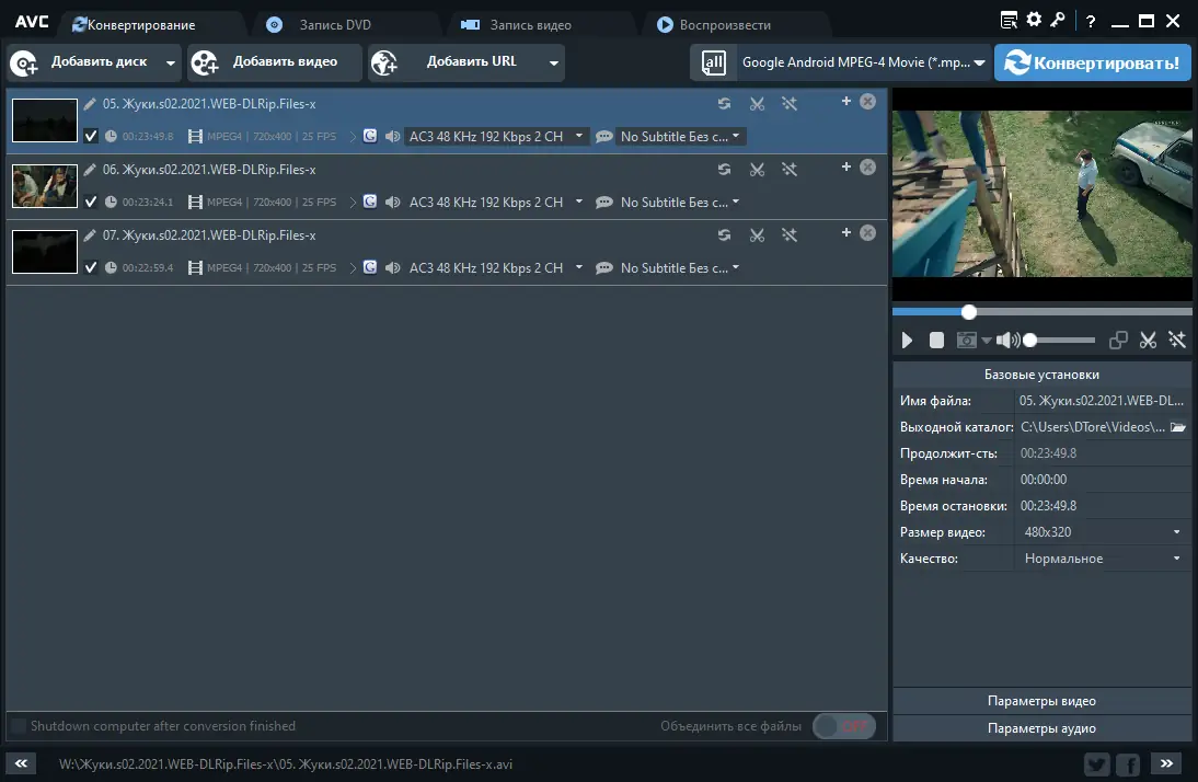 Работа с Any Video Converter