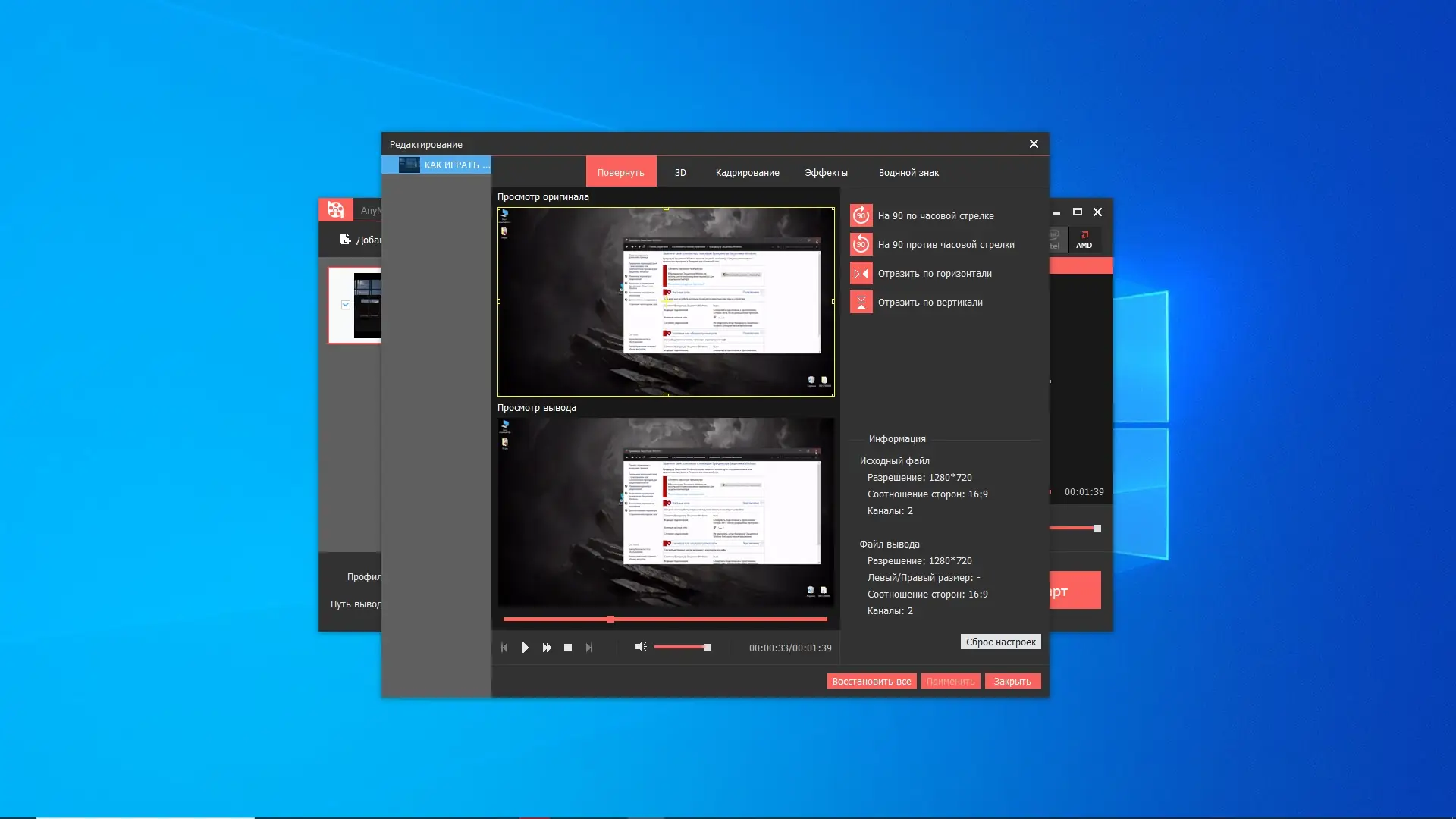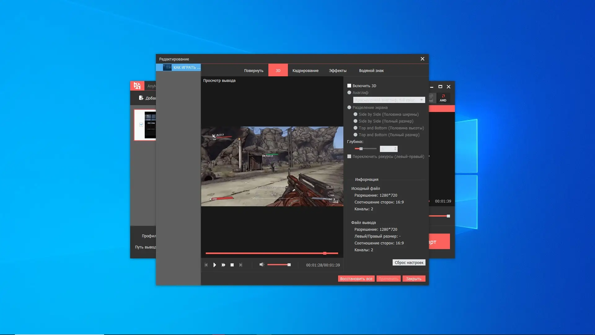 - Создание 3D-видео в режимах side-by-side, top-and-bottom и anaglyph