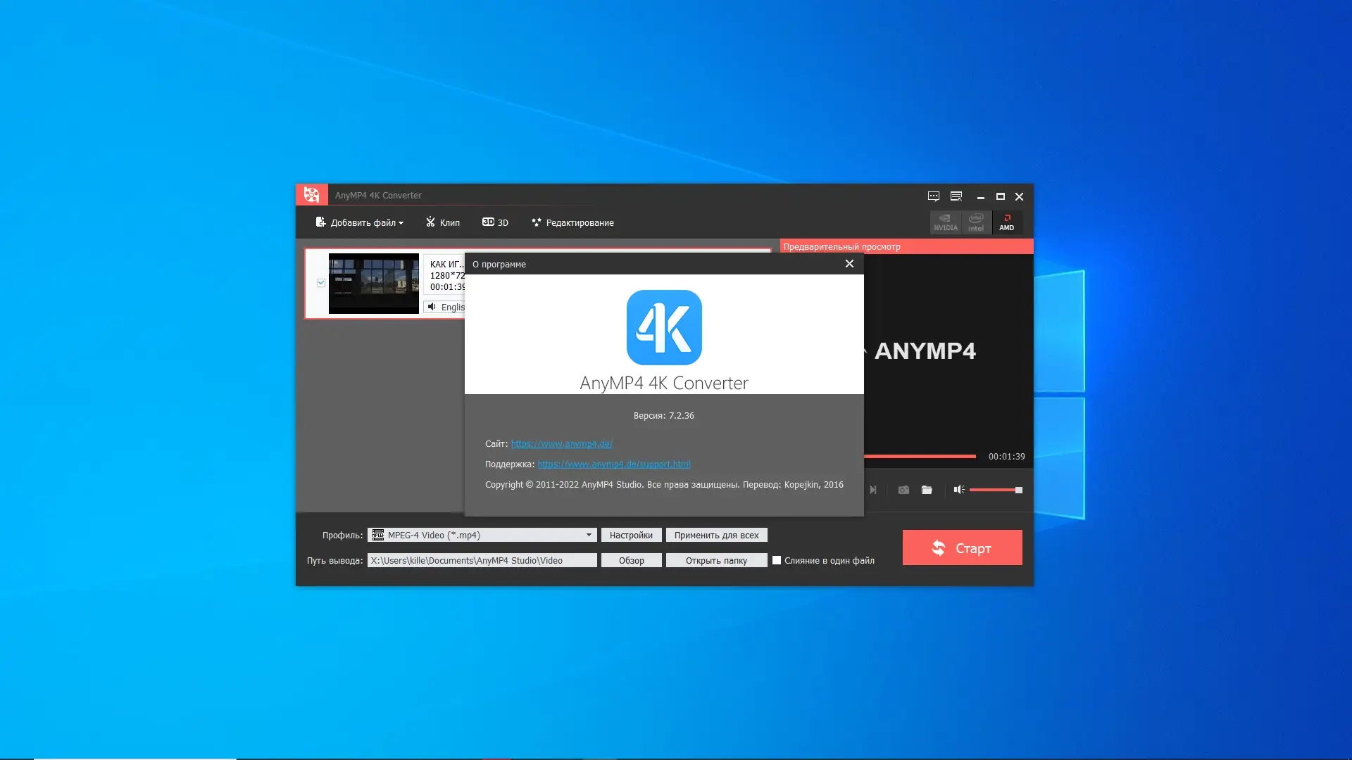 Описание AnyMP4 4K Converter