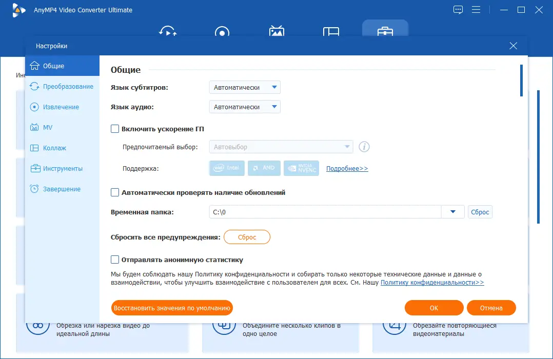 Работа с AnyMP4 Video Converter Ultimate