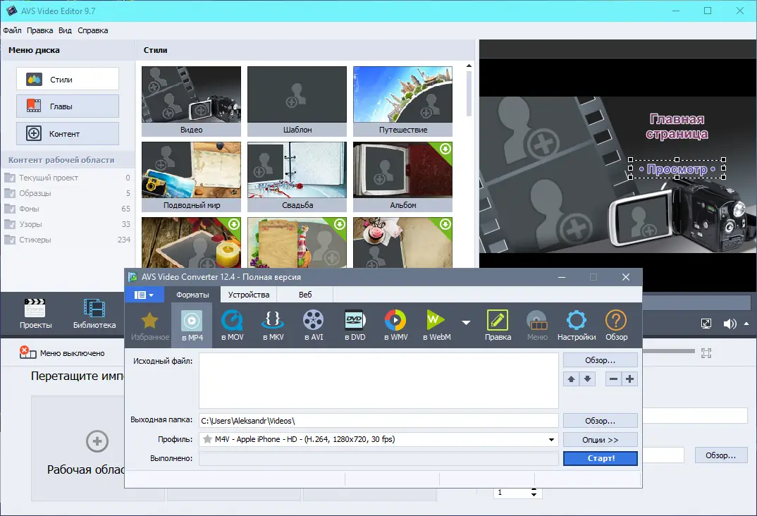 AVS Video Software — это набор специализированных инструментов для обработки и преобразования видео, включающий редактор, конвертер и утилиту для перекодирования. Комплект подходит для работы с форматами высокого разрешения, создания слайд-шоу, подготовки контента под мобильные устройства и записи на оптические носители. Программы объединены общей архитектурой и поддерживают широкий спектр операций без необходимости перехода между разными приложениями.