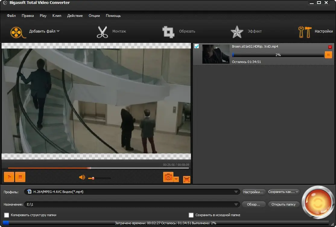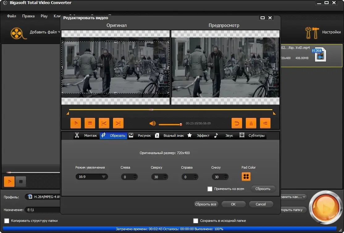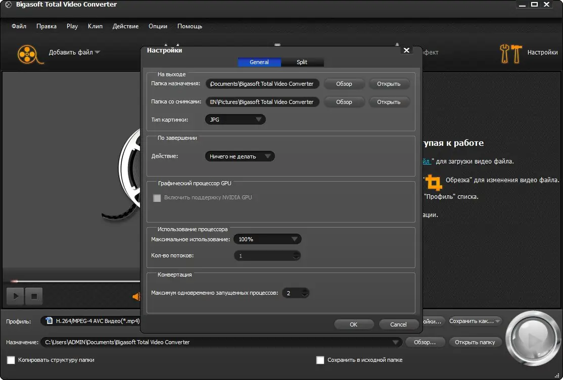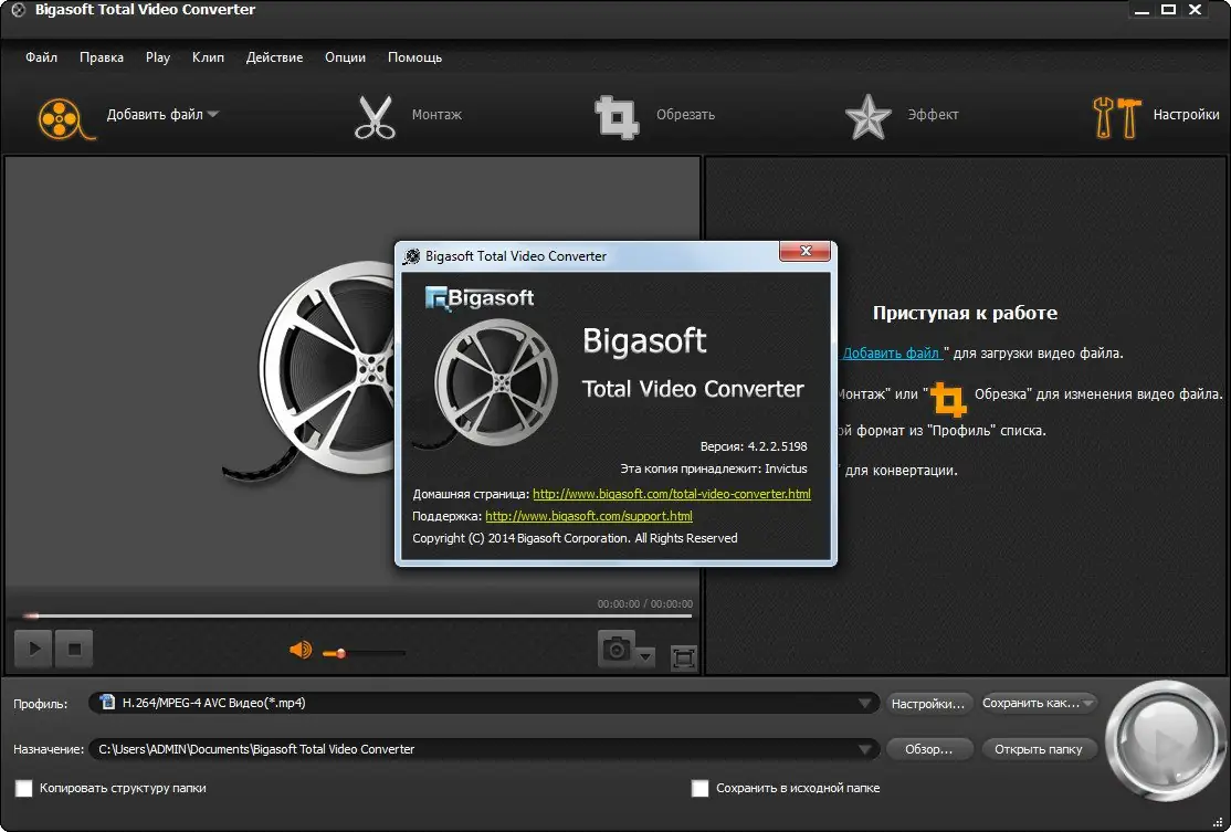 Работа с Bigasoft Total Video Converter