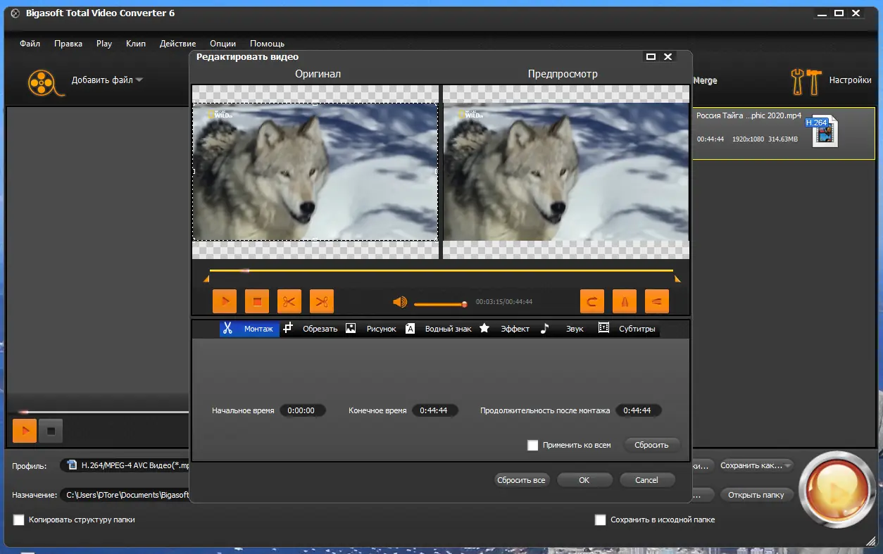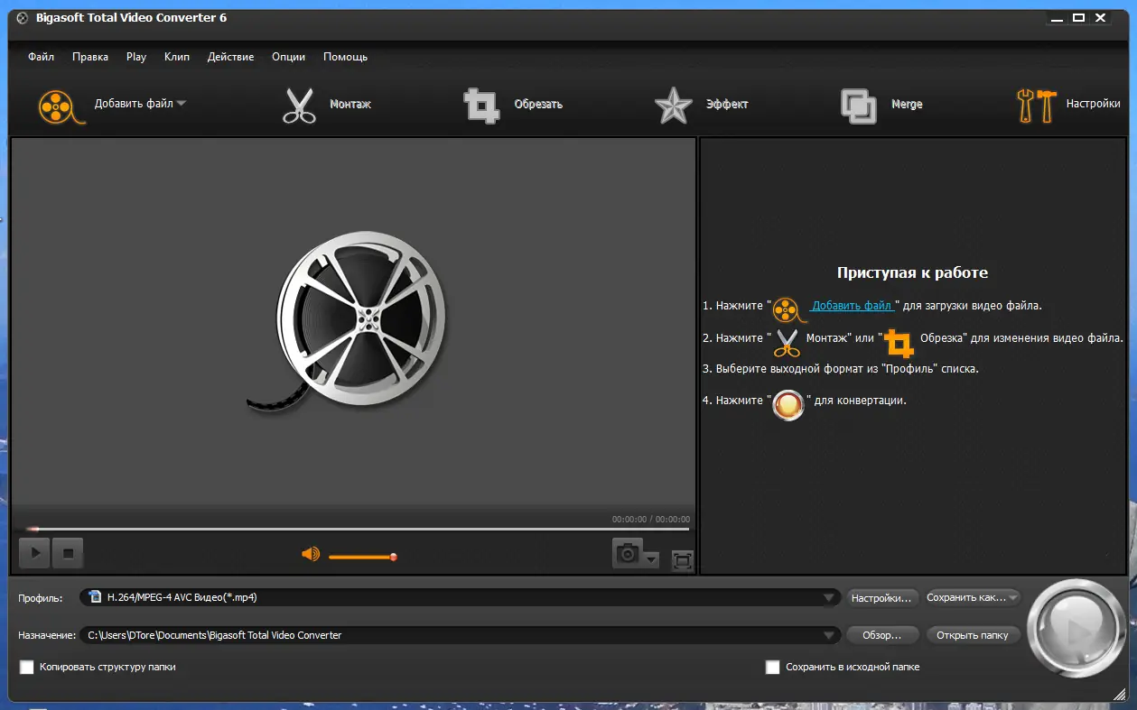 Работа с Bigasoft Total Video Converter