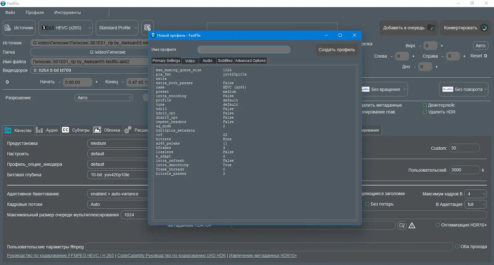 - Сохранение метаданных HDR10 при кодировании в HEVC через x265, NVEncC и VCEEncC