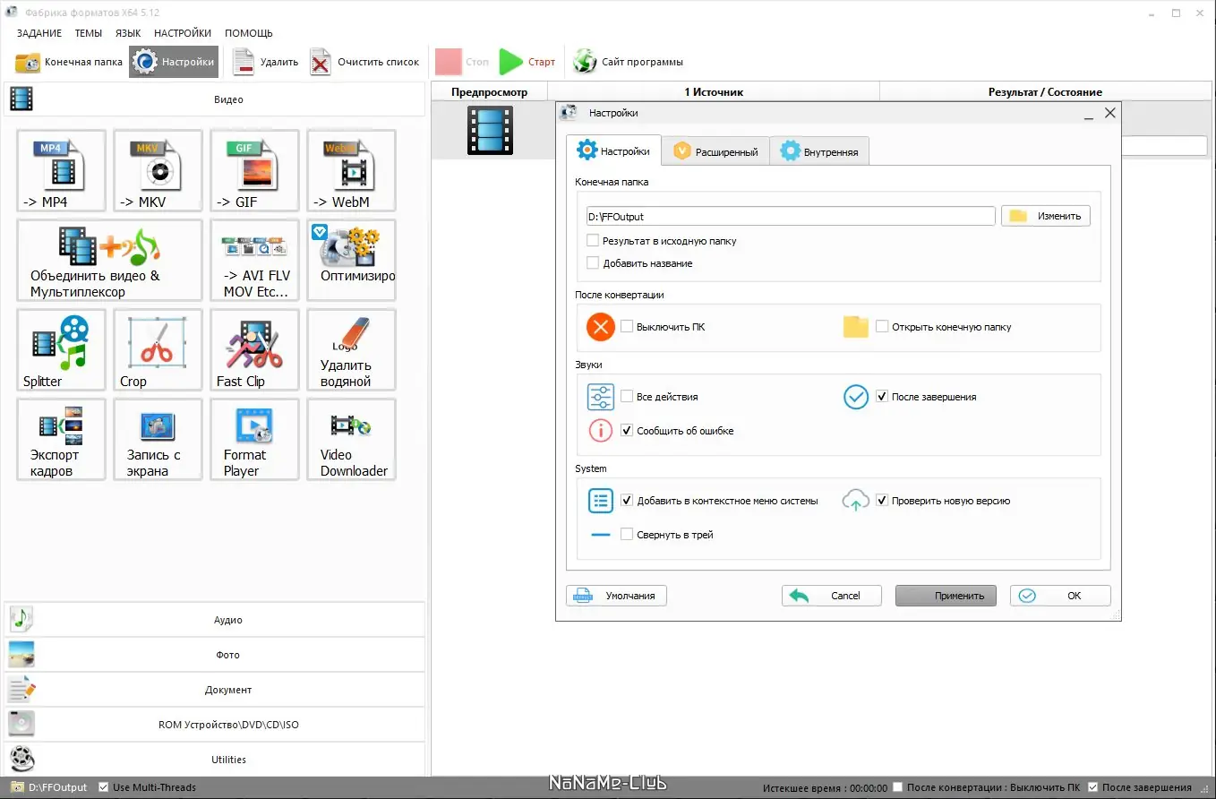 Format Factory — универсальный конвертер для преобразования аудио, видео и графических файлов с поддержкой широкого спектра форматов. Программа позволяет не только перекодировать мультимедиа, но и восстанавливать повреждённые файлы, оптимизировать размеры данных, обрабатывать изображения и копировать диски. Интуитивно понятный интерфейс и поддержка русского языка делают её удобной для пользователей любого уровня.