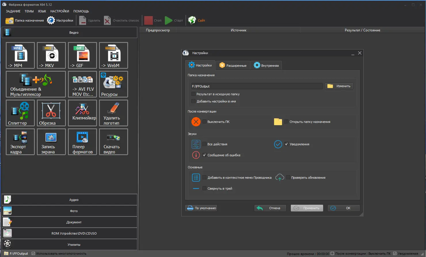 Работа с Format Factory